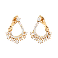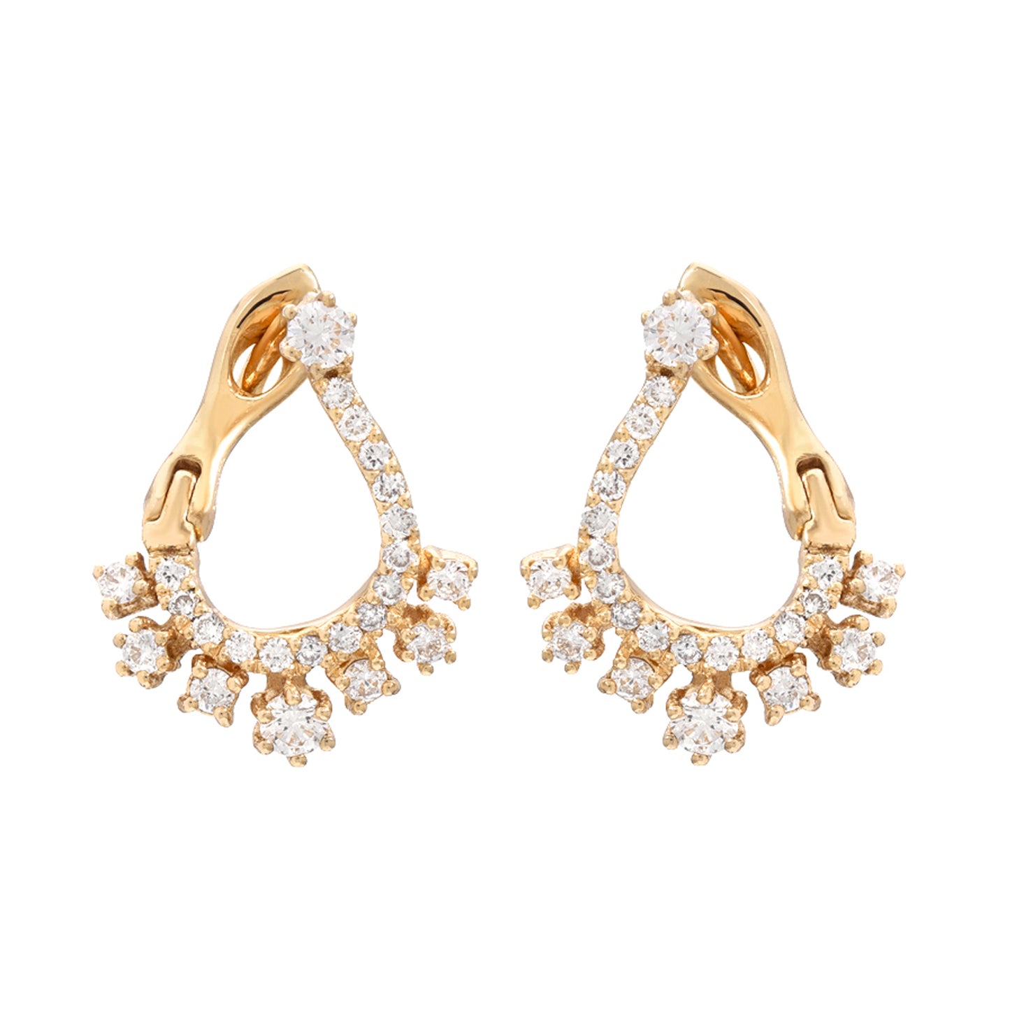 This finely handcrafted huggie hoop dangle earring is composed of 14K solid gold and pavé set with genuine GVs1 quality round brilliant cut natural real Diamonds. This earring also features a secure hinged closure for the ease of taking them on and off.