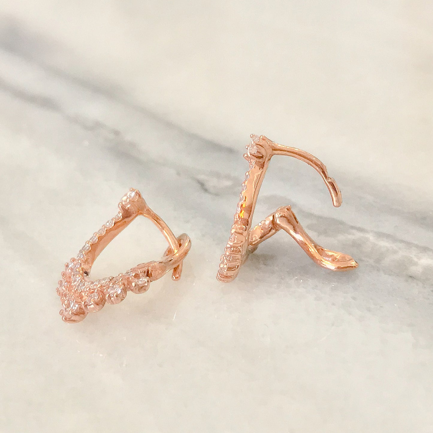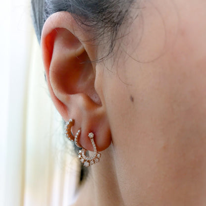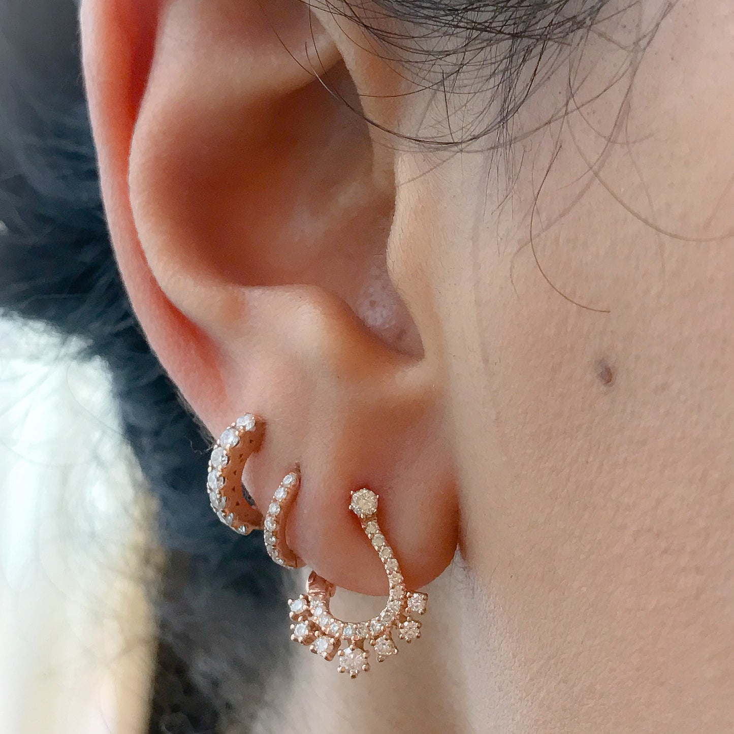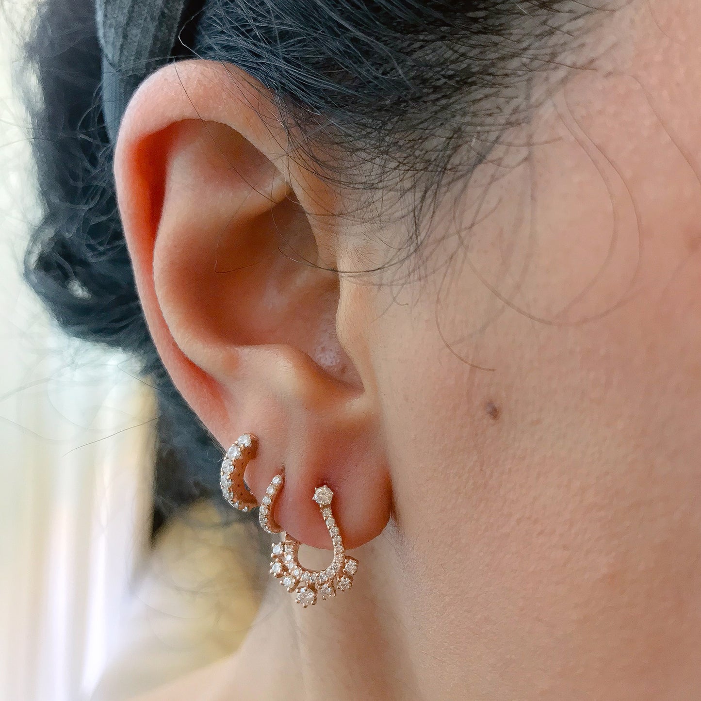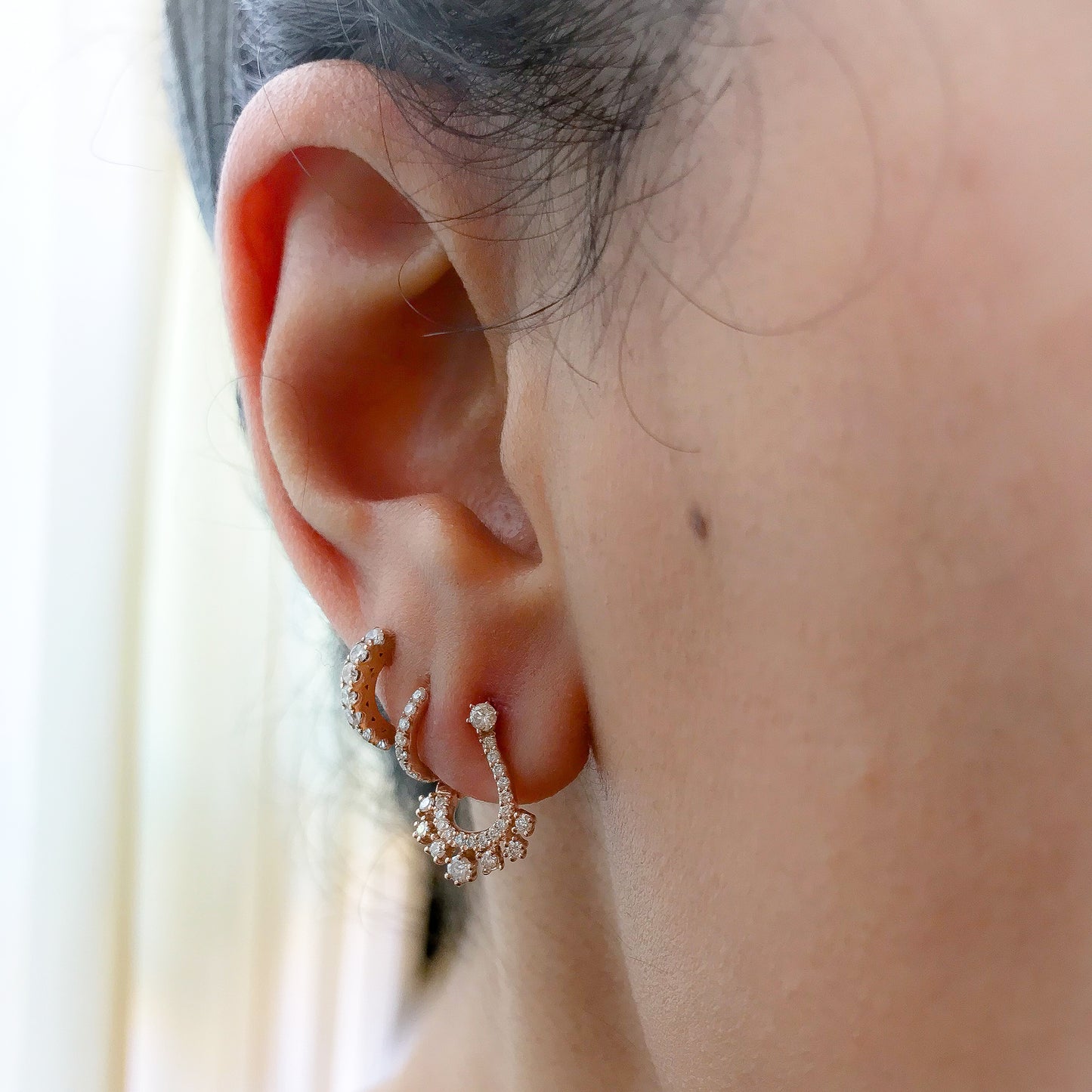 14K Gold Pavé Diamond Front to Back Illusion Huggie Hoop Earrings