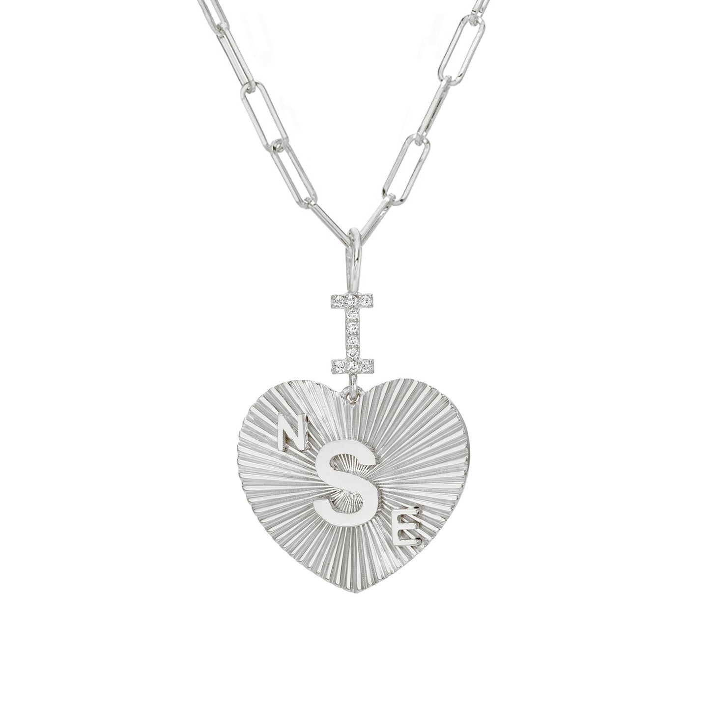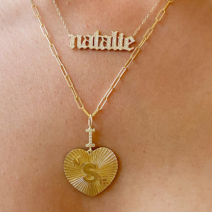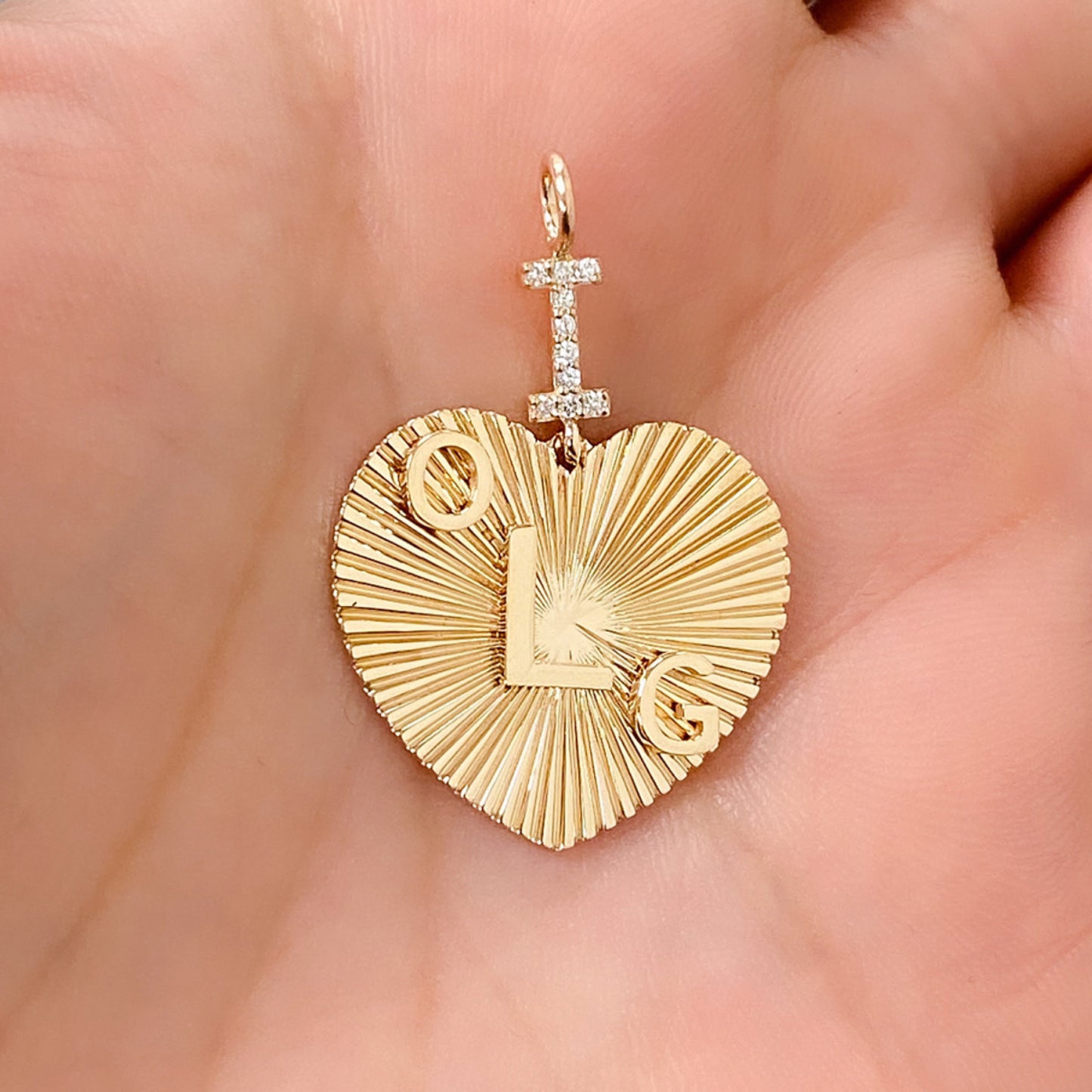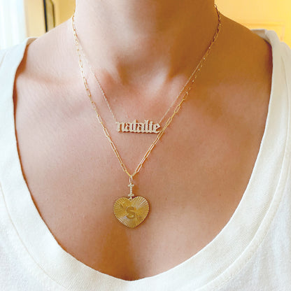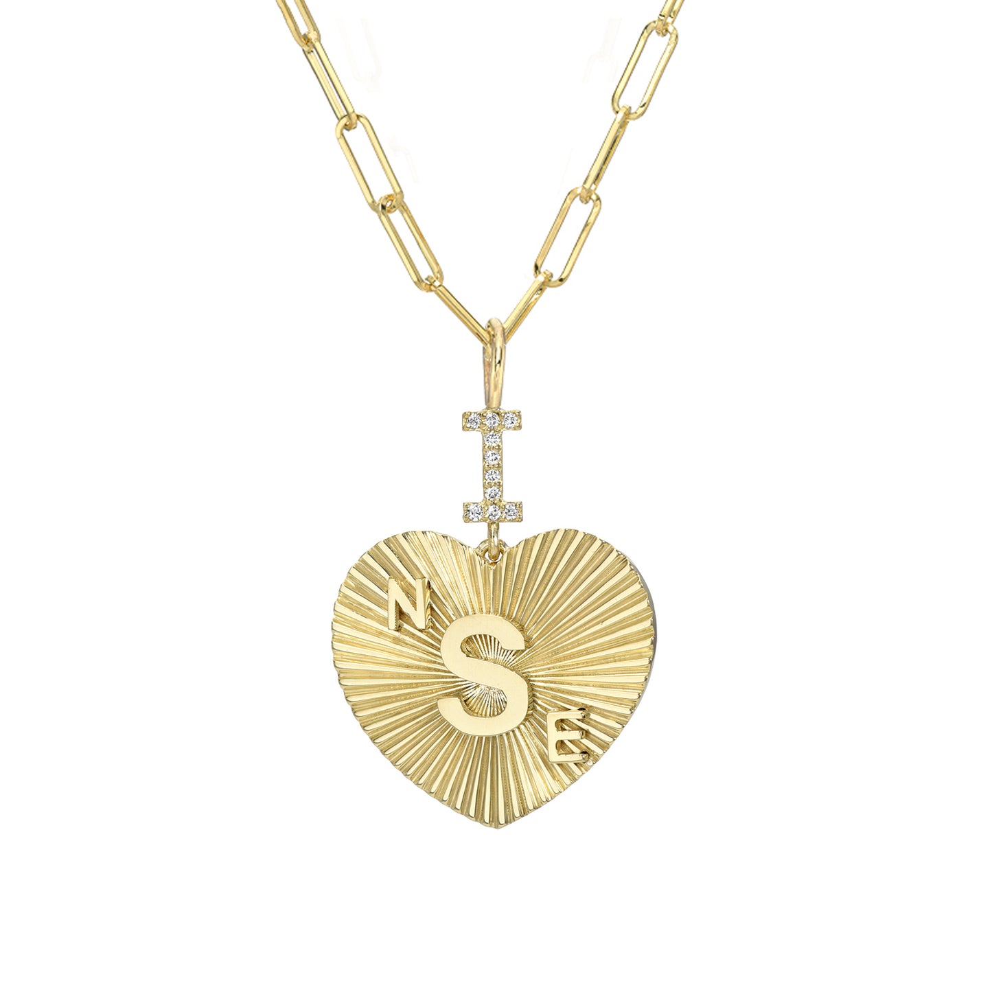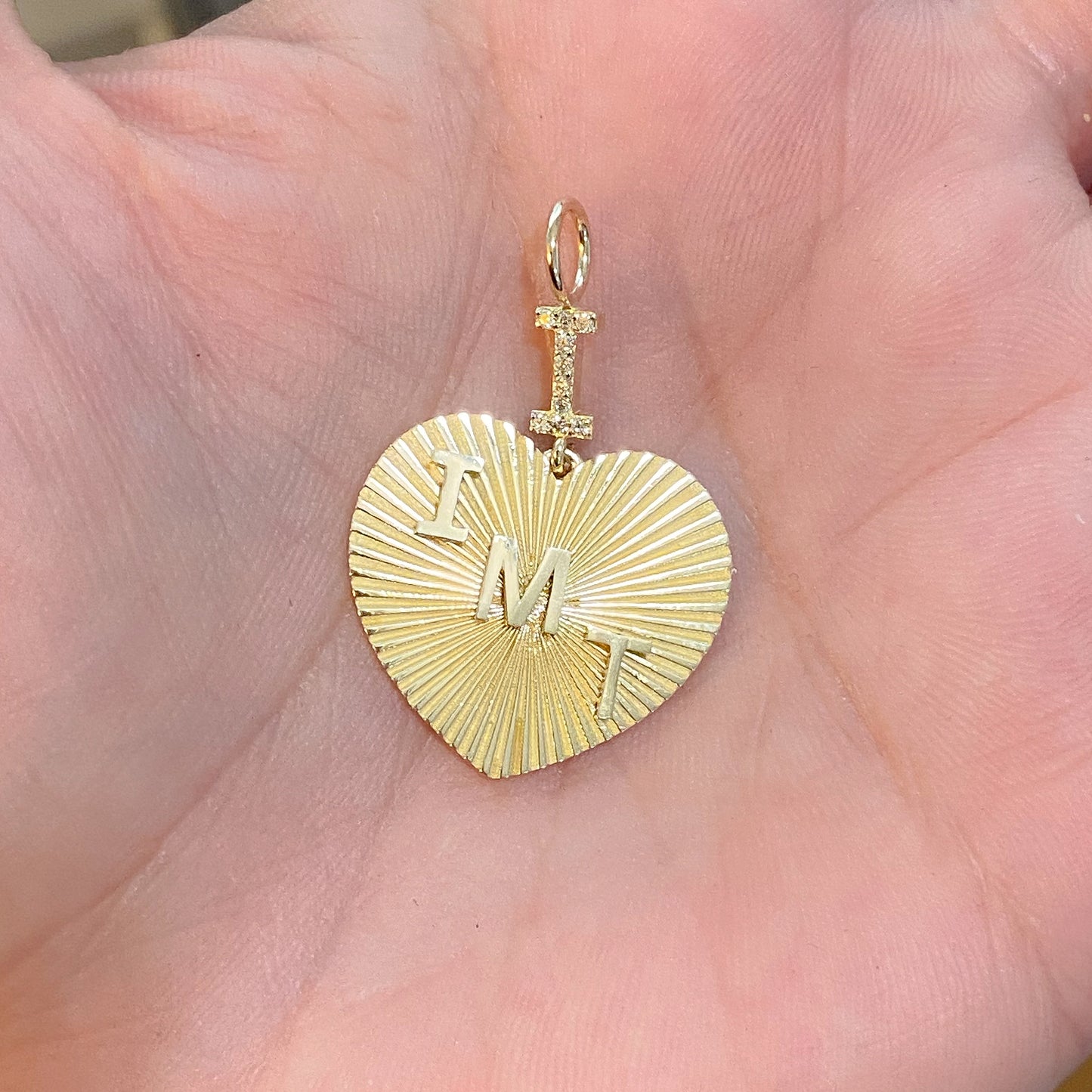 14K Gold Pavé Diamond "I Love" Monogram Initial Fluted Heart Charm Necklace