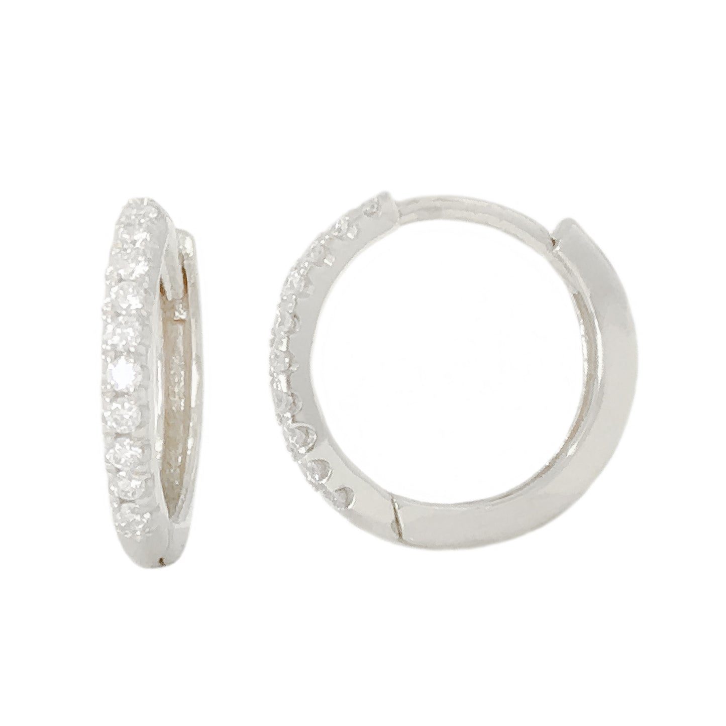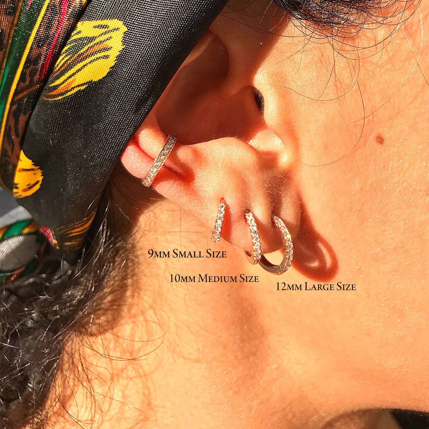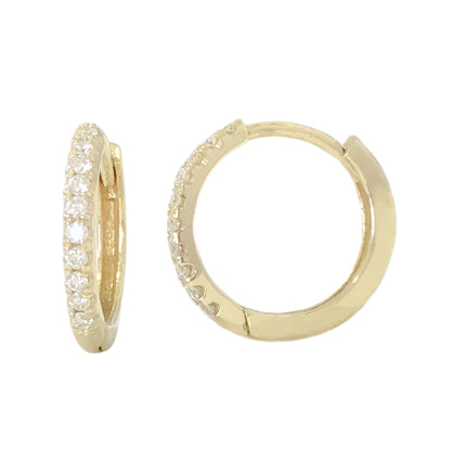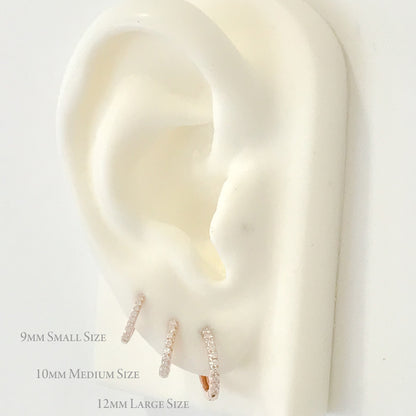 14K Gold Pavé Diamond Large Size (12mm) Huggie Hoop Earrings