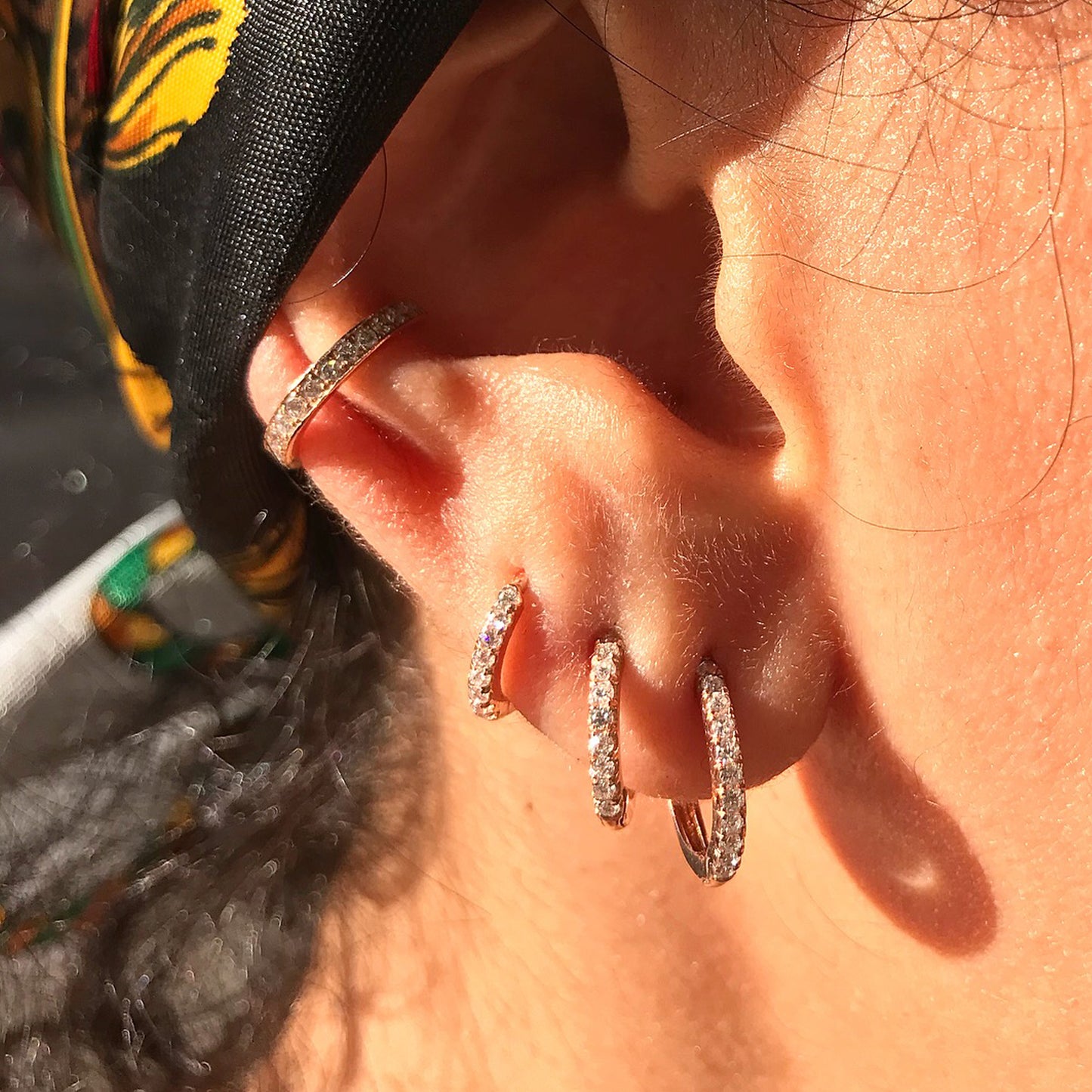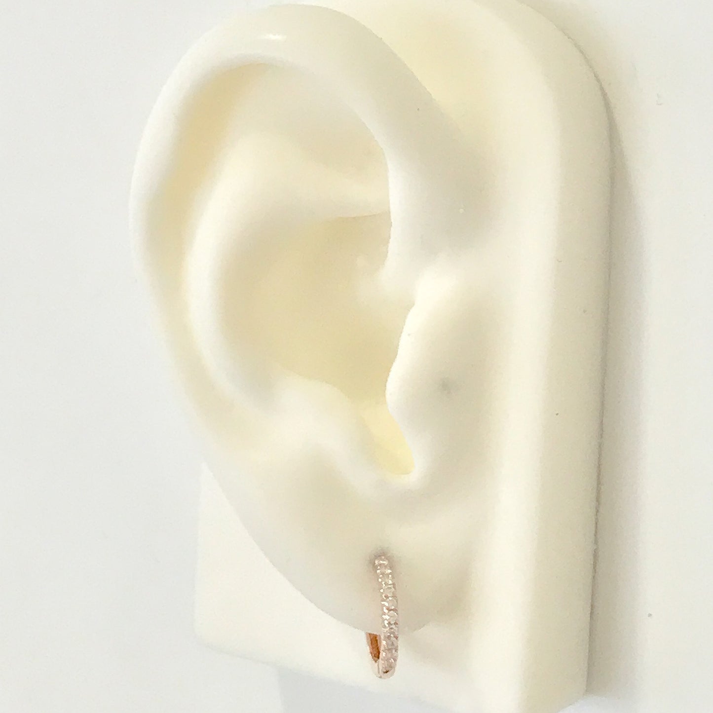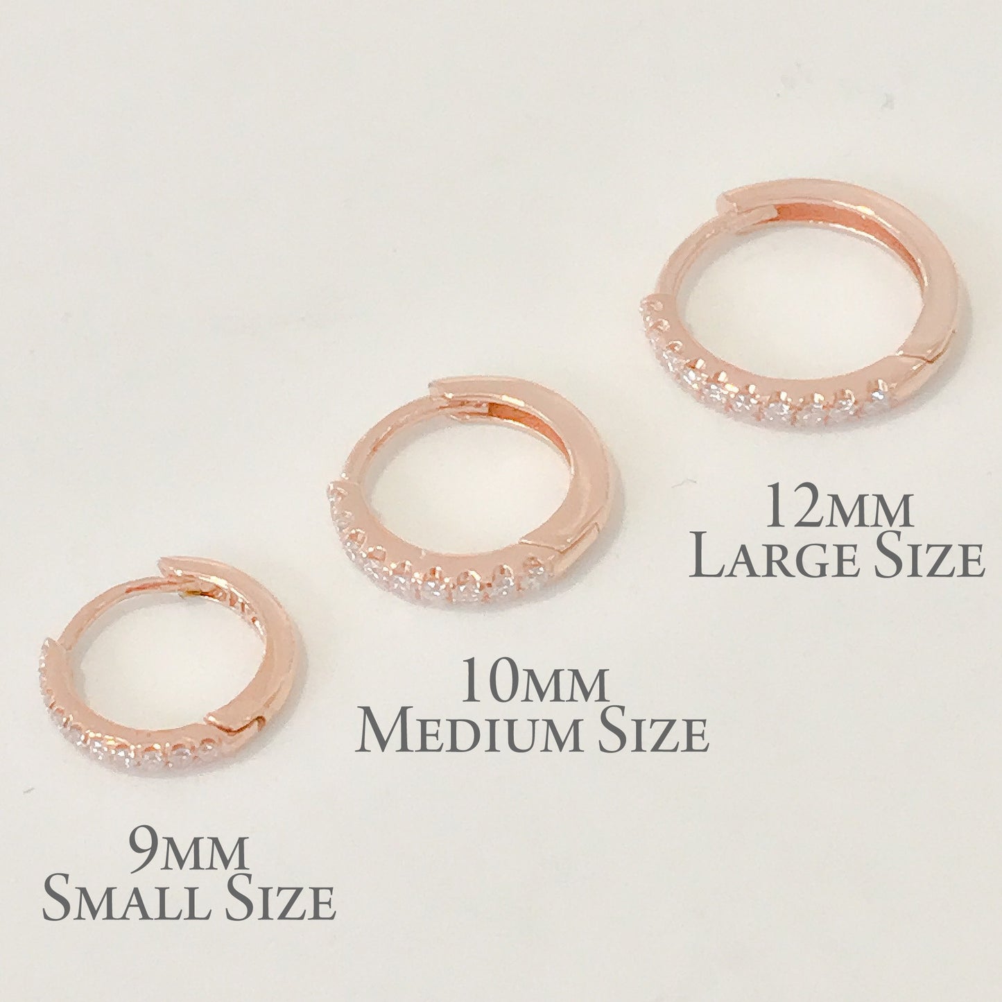 14K Gold Pavé Diamond Large Size (12mm) Huggie Hoop Earrings