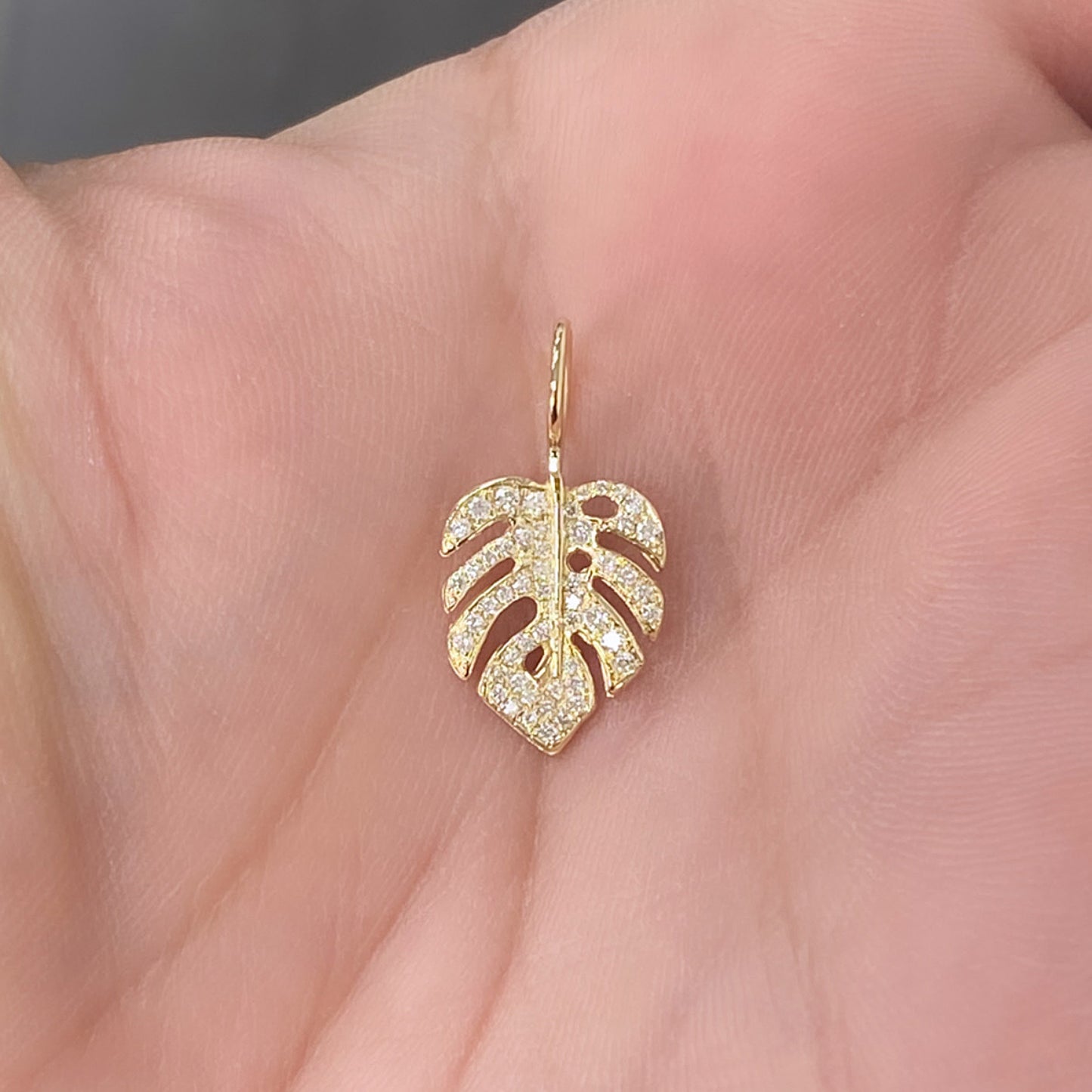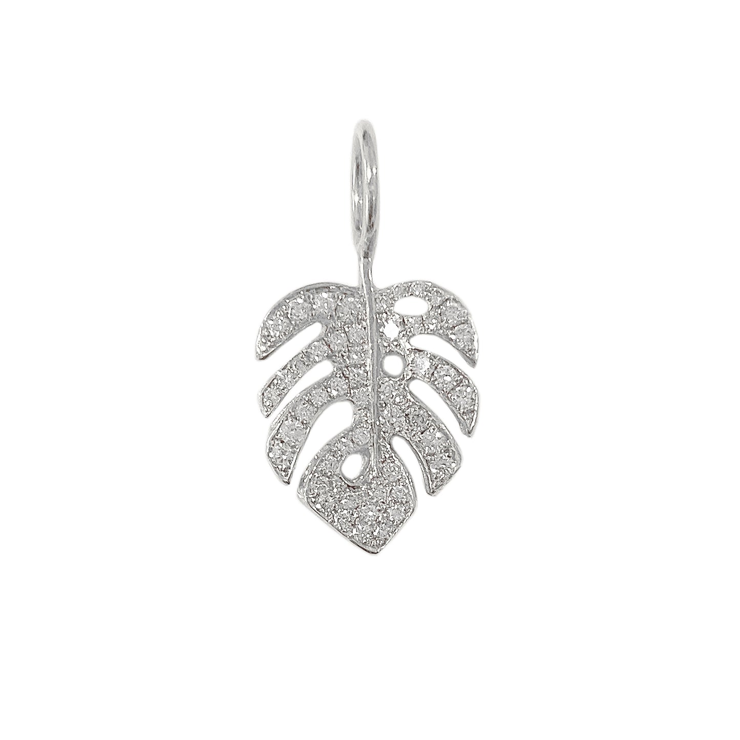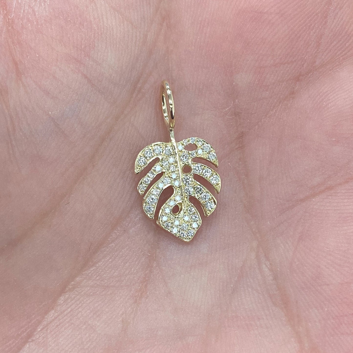 14K Gold Pavé Diamond Monstera Palm Leaf Charm Pendant
