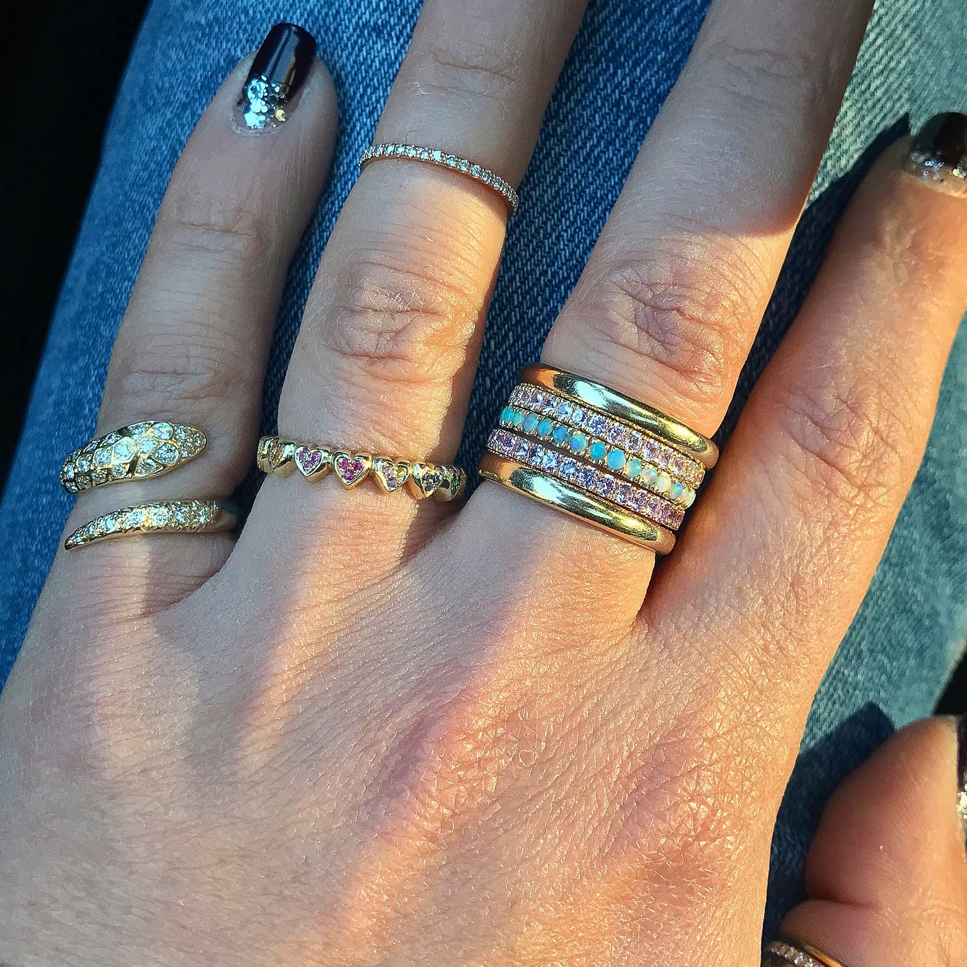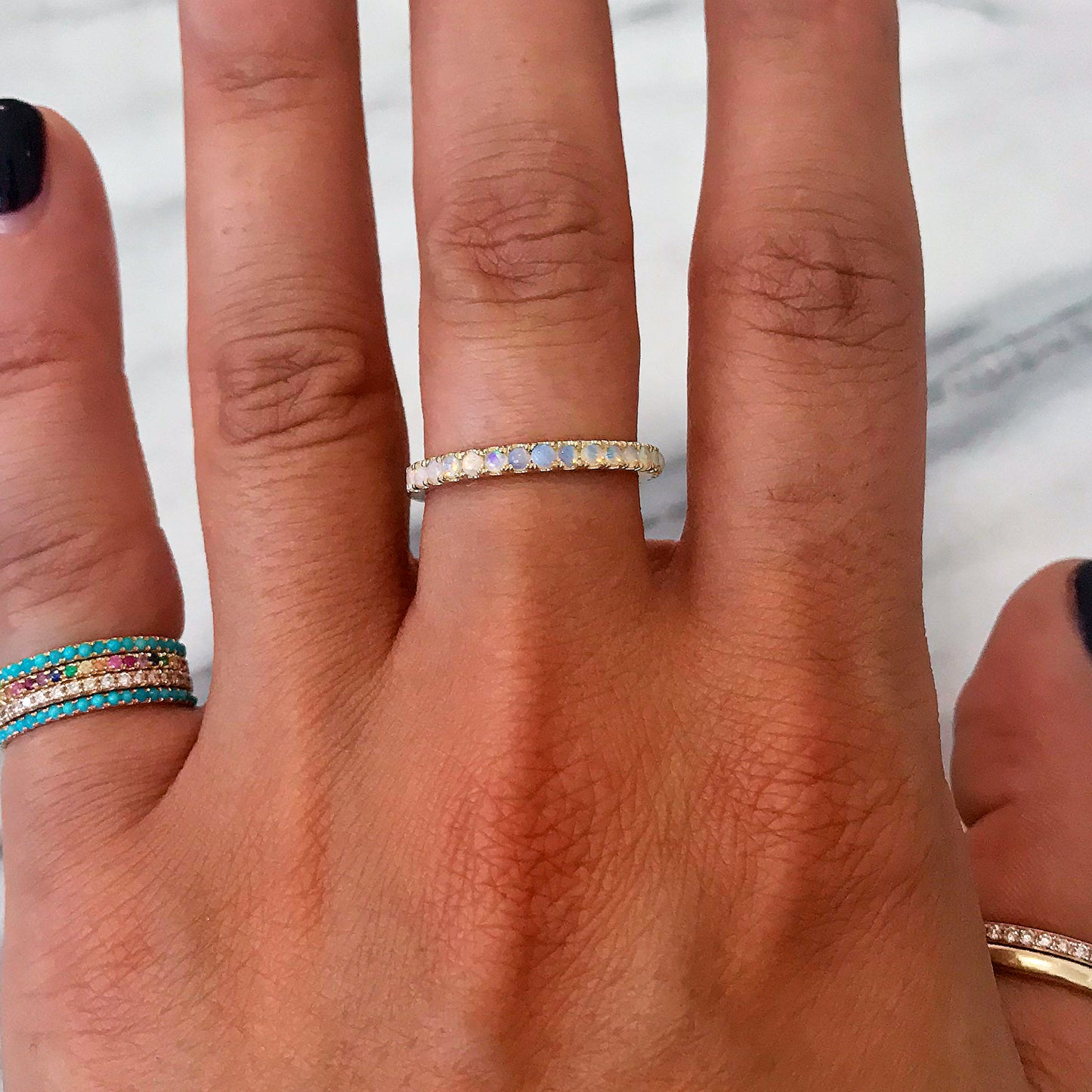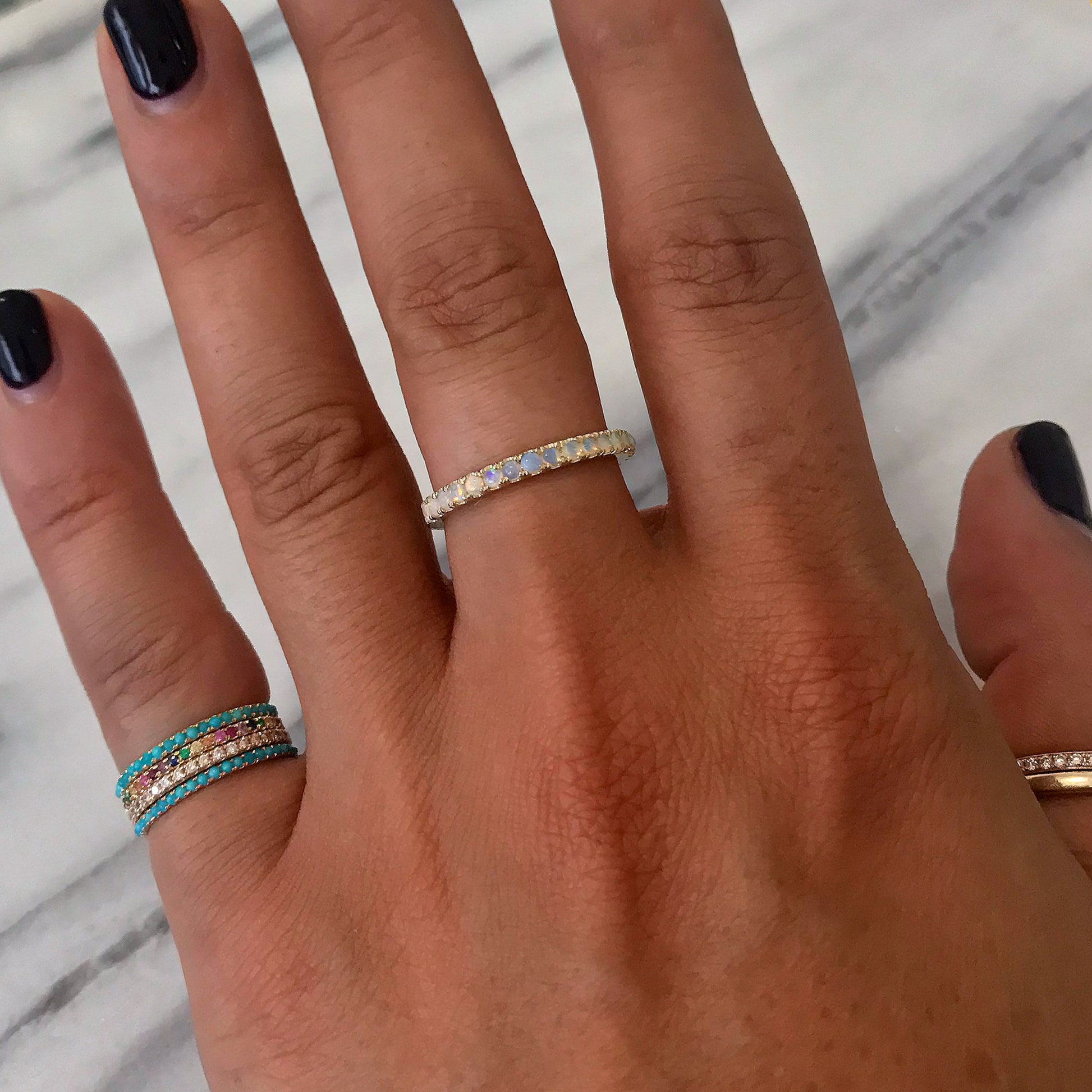 14K Gold Pavé Opal Half Eternity Band