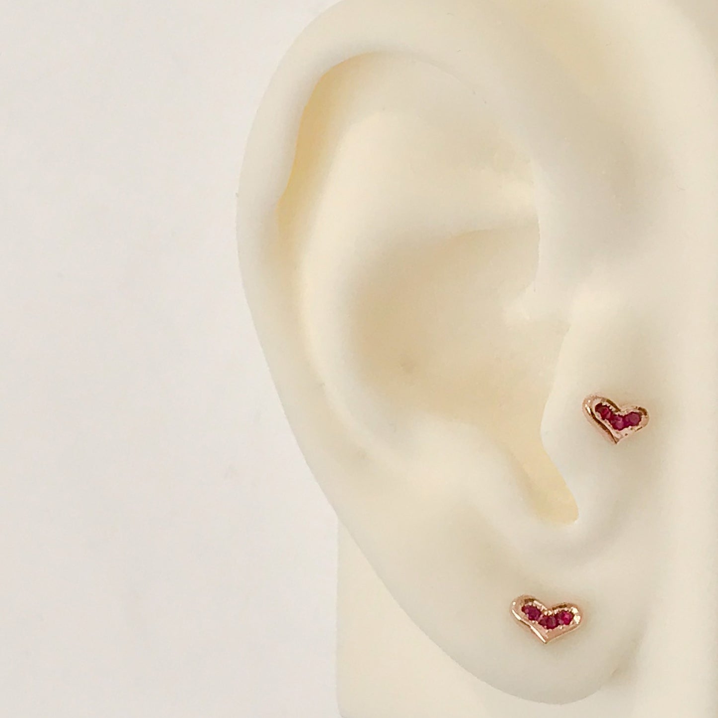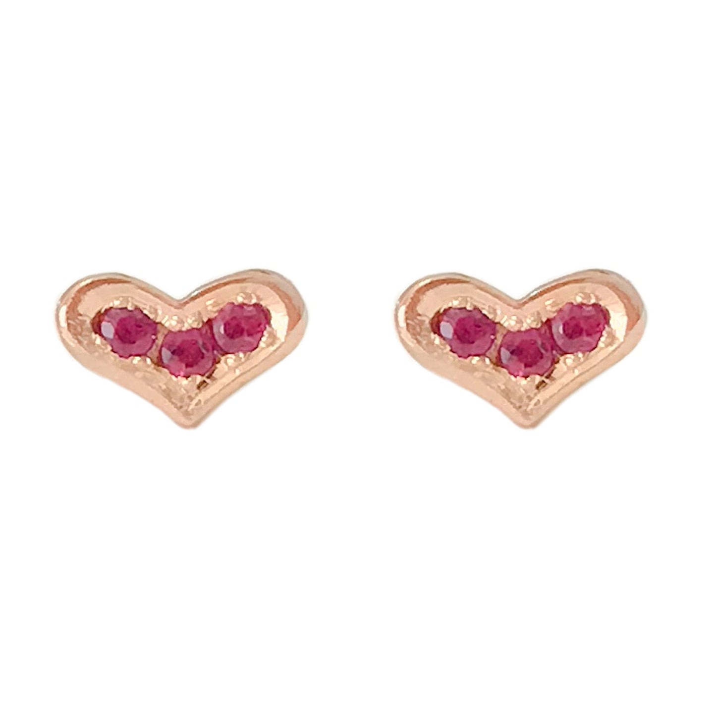 14K Gold Pavé Ruby XS Sweetheart Stud Earrings