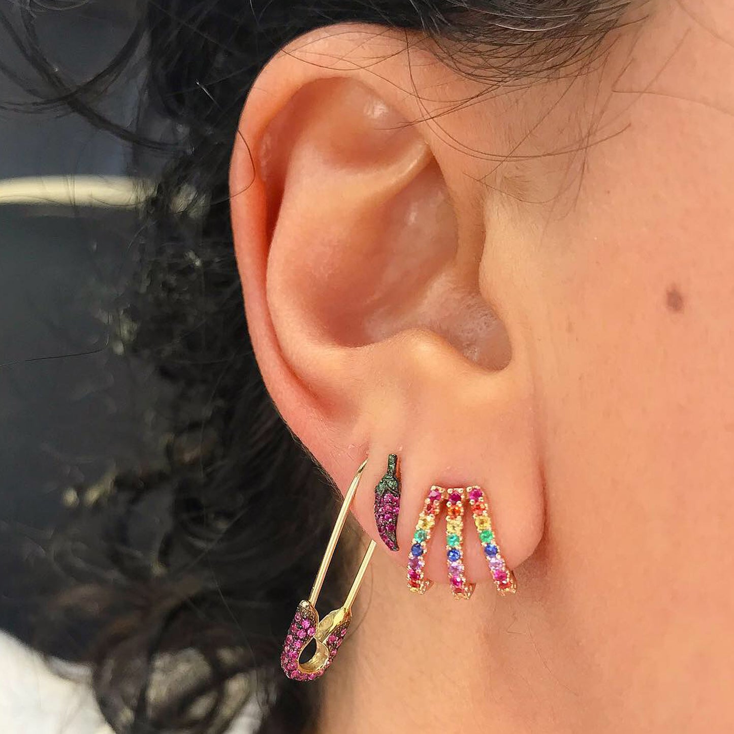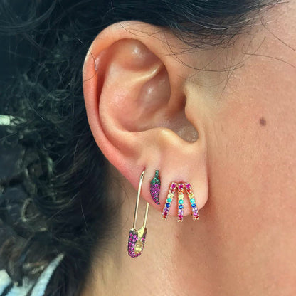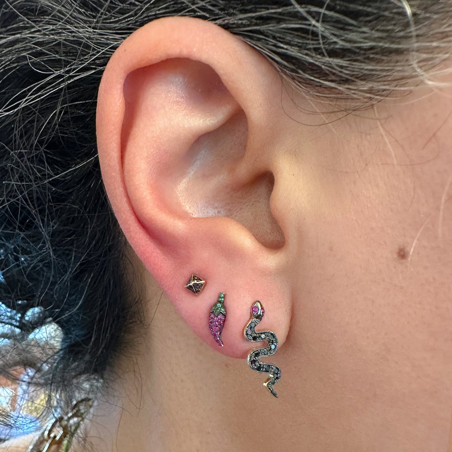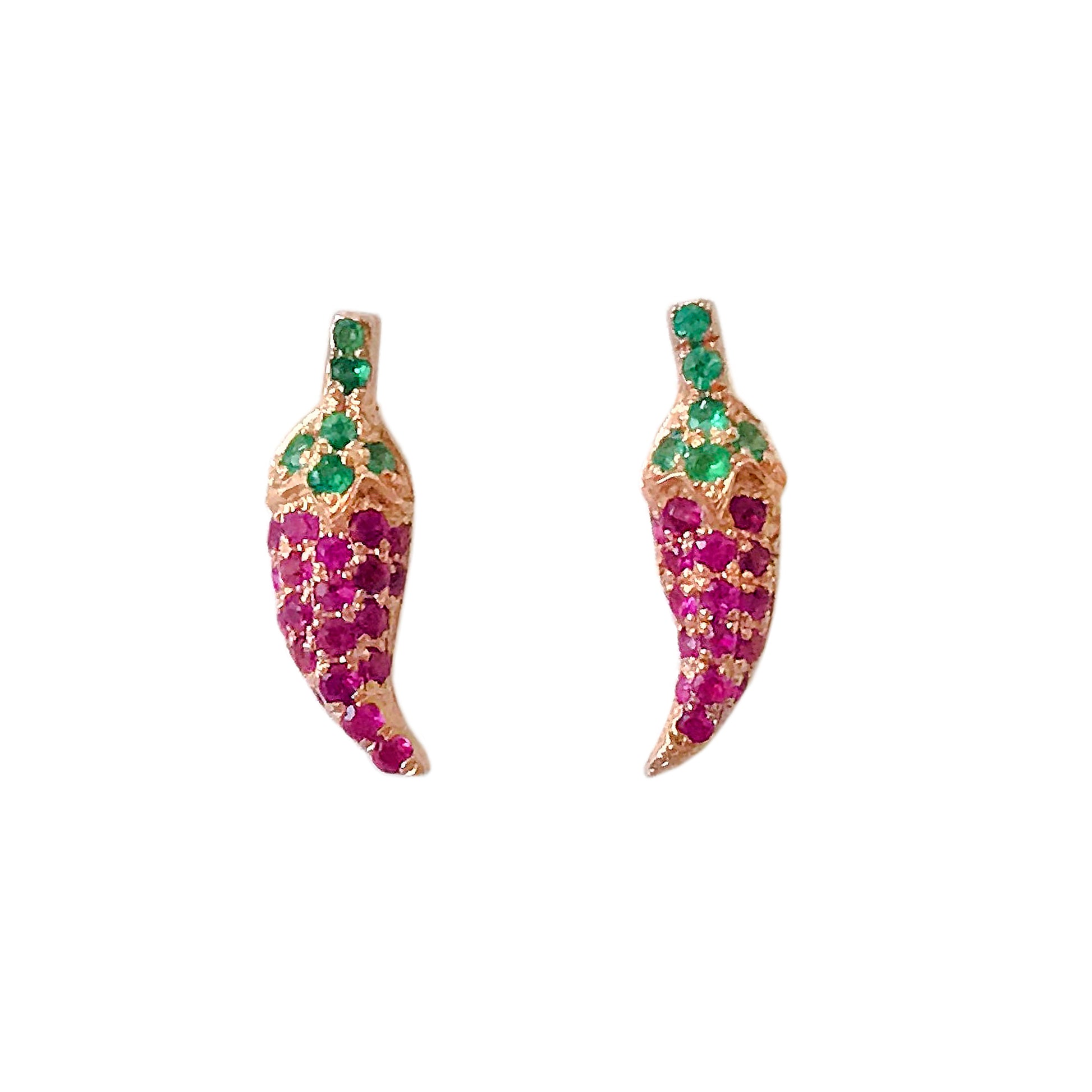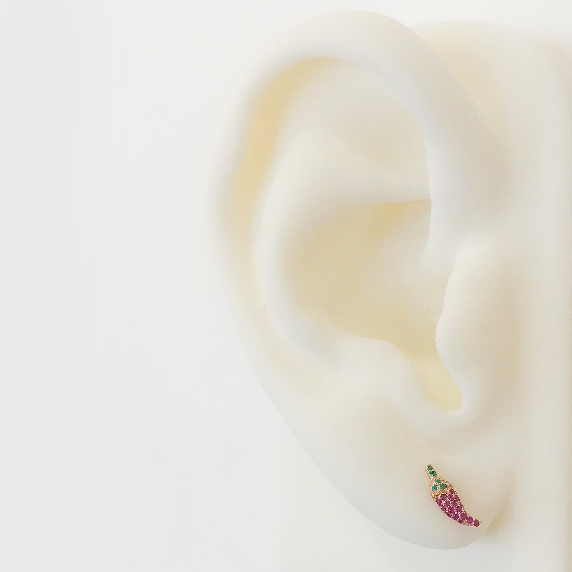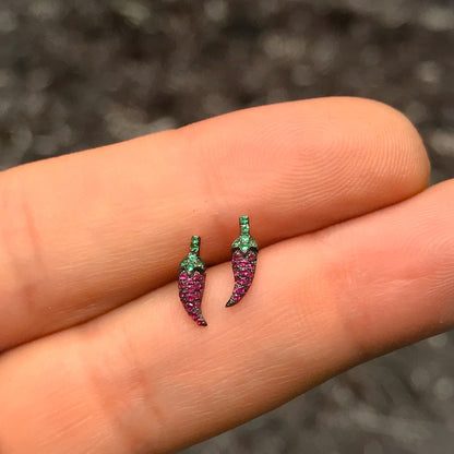 14K Gold Pavé Ruby & Emerald XS Chili Pepper Stud Earrings