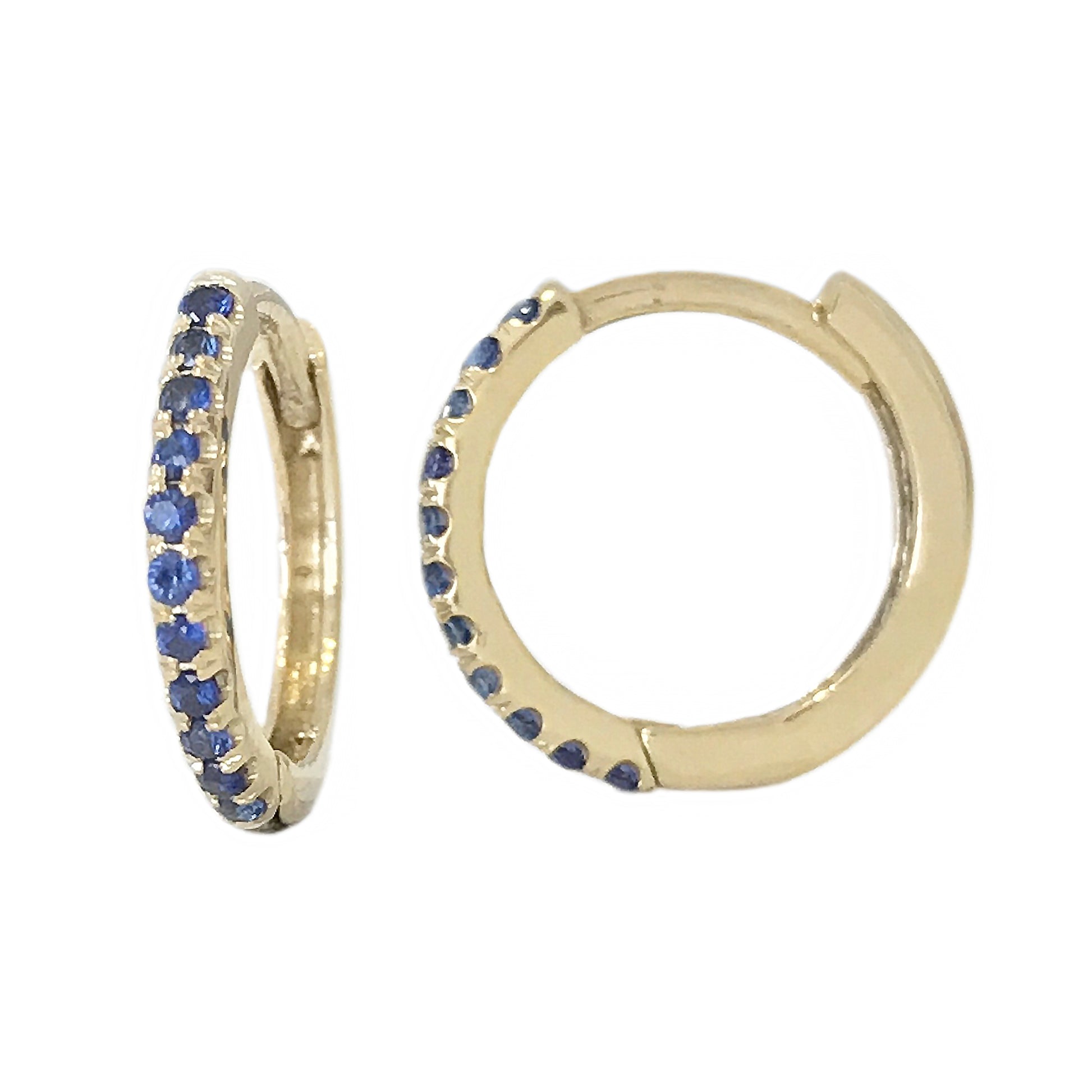 14K Gold Pavé Sapphire Large Size (12mm) Huggie Hoop Earrings