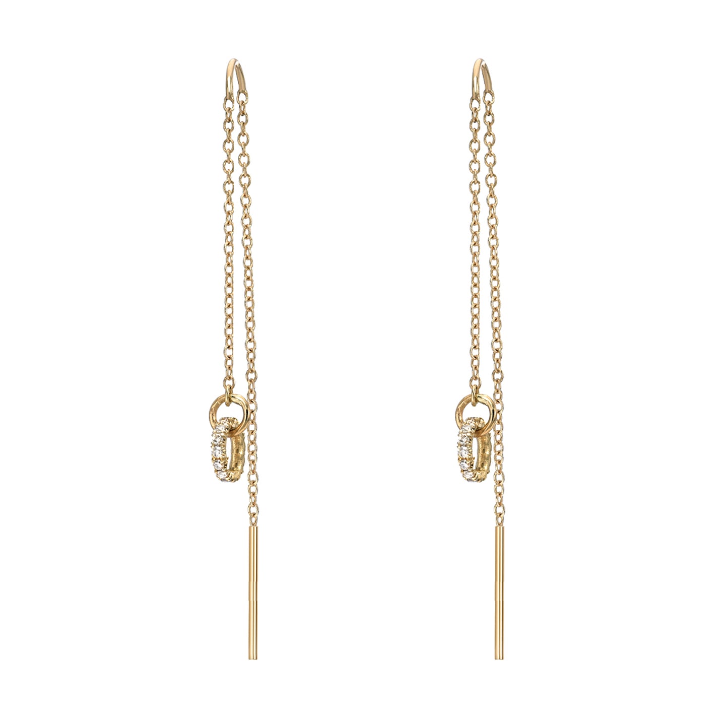 14K Gold Petite Diamond Halo Threader Chain Earrings ~ LIMITED EDITION