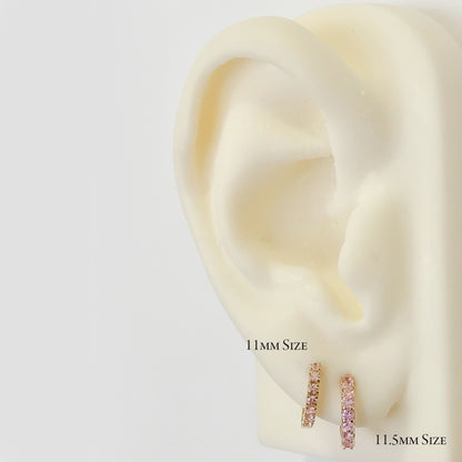 14K Gold Powder Pink Sapphire Thick Huggie Hoop Earrings (11mm x 6mm)