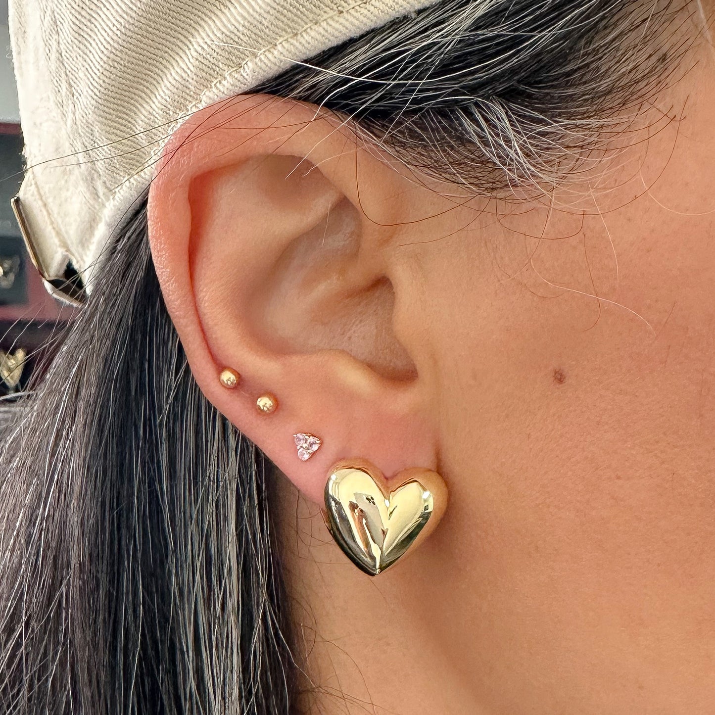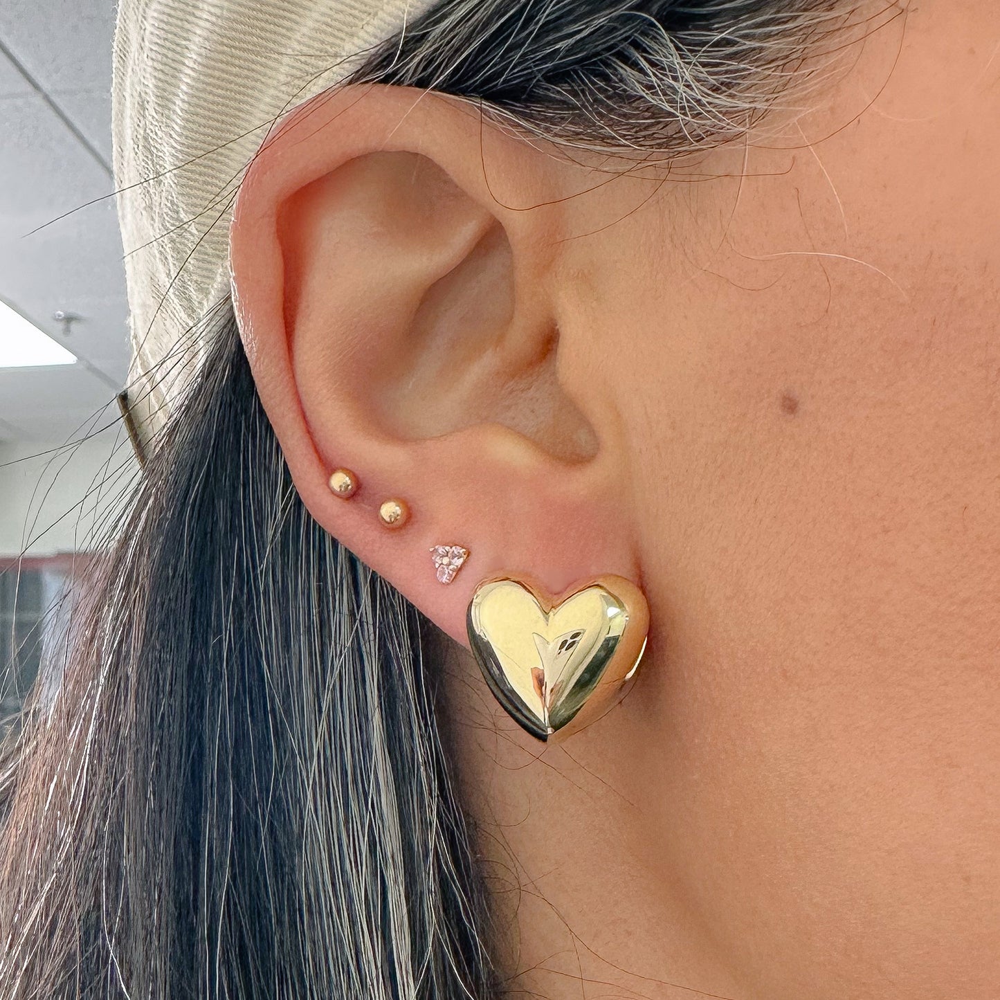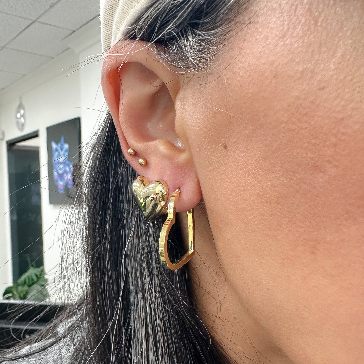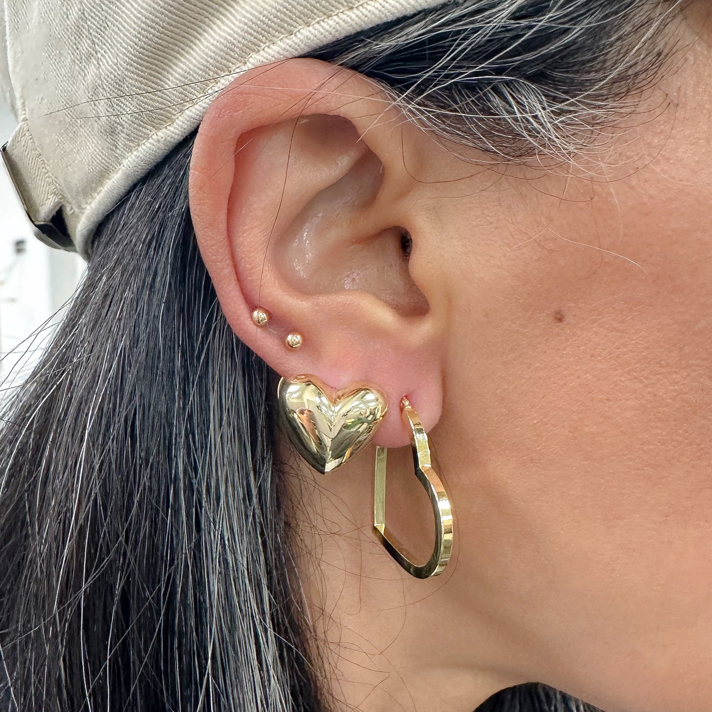 14K Gold Puffy Heart Huggie Hoop Earrings