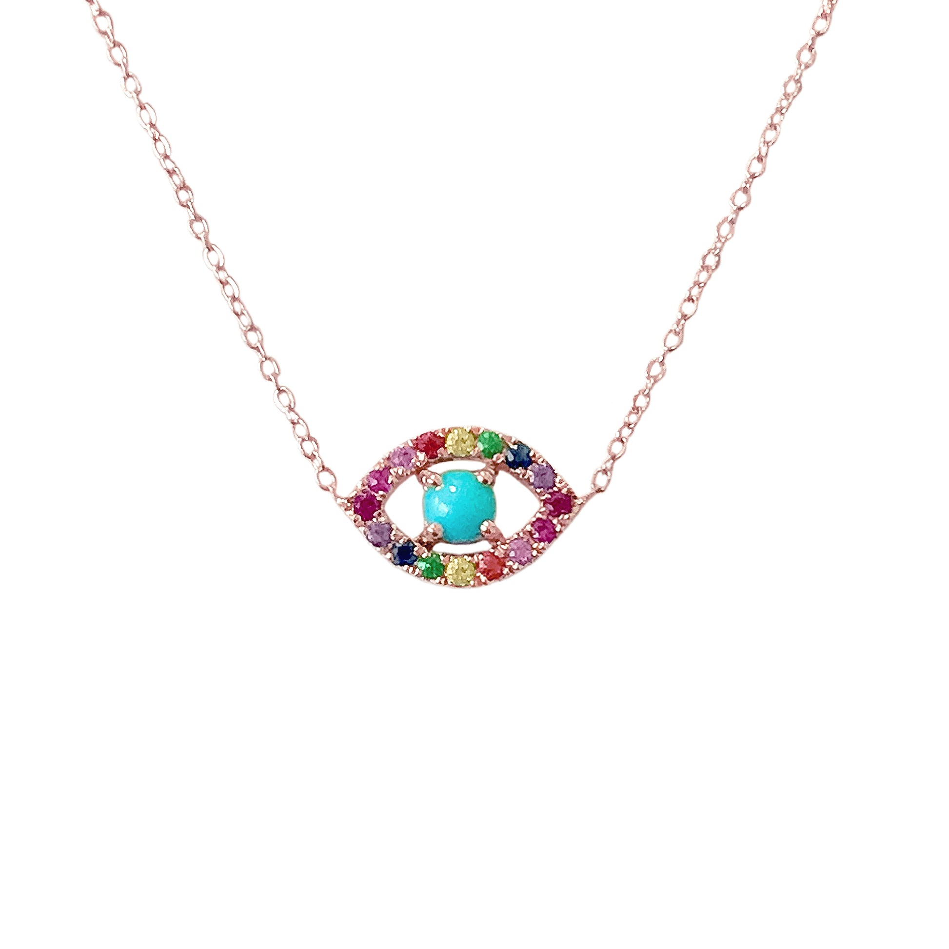 14K Gold Rainbow Gemstone Evil Eye Necklace