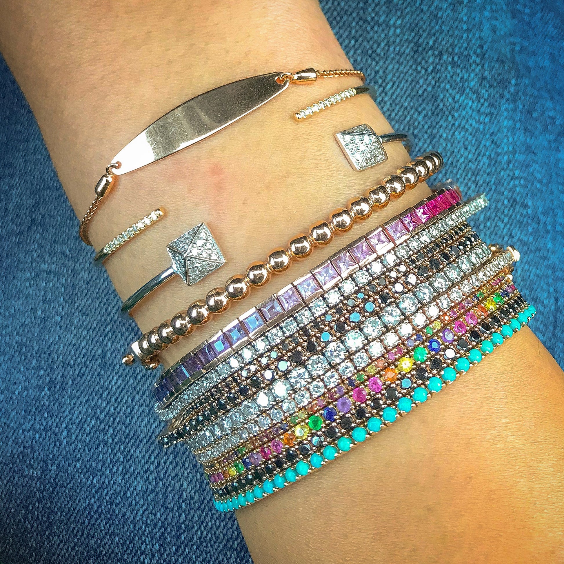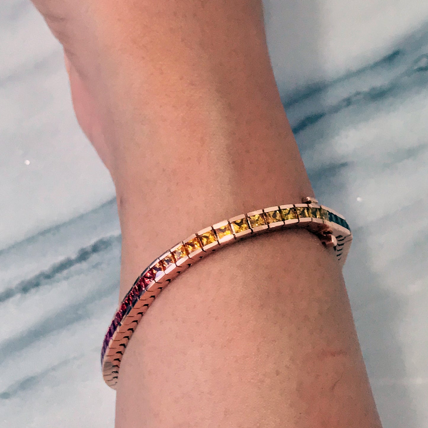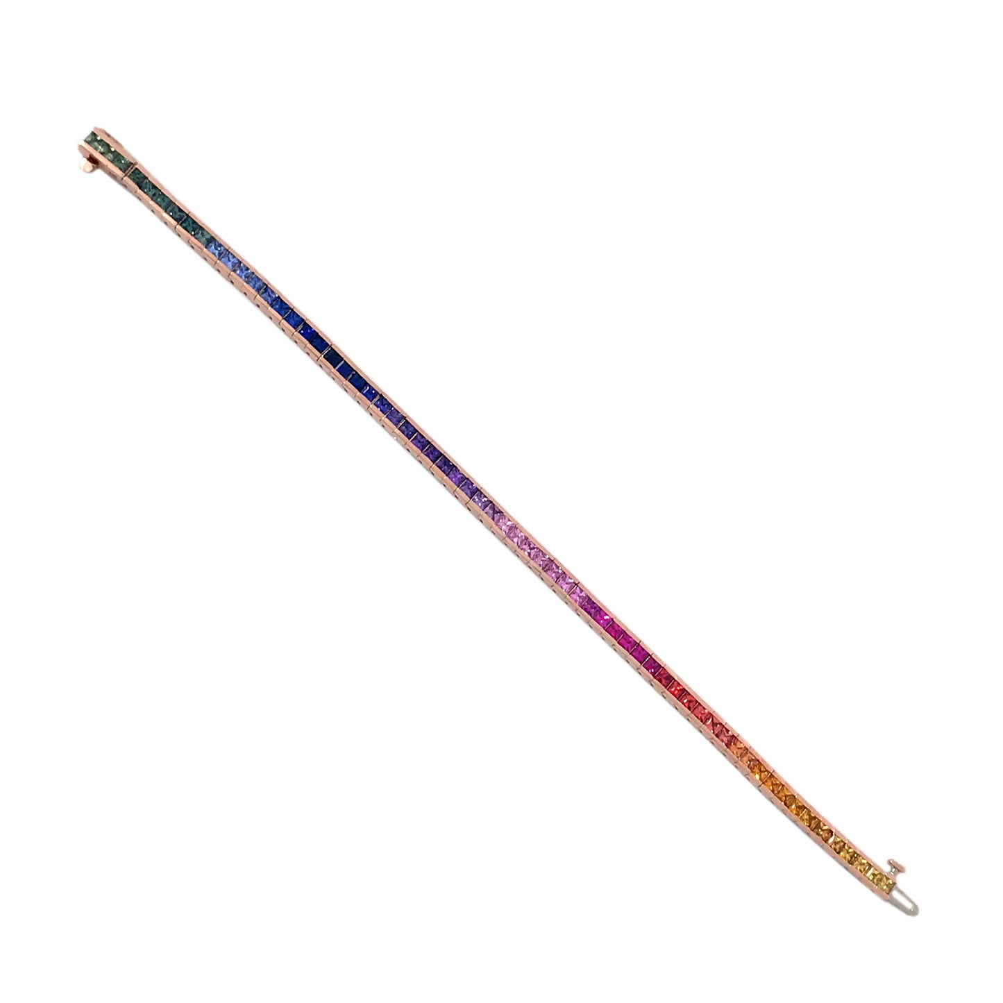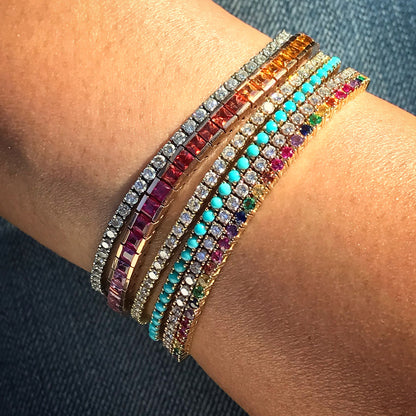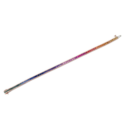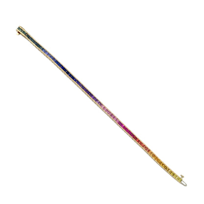 14K Gold Rainbow Sapphire Channel Set Tennis Bracelet