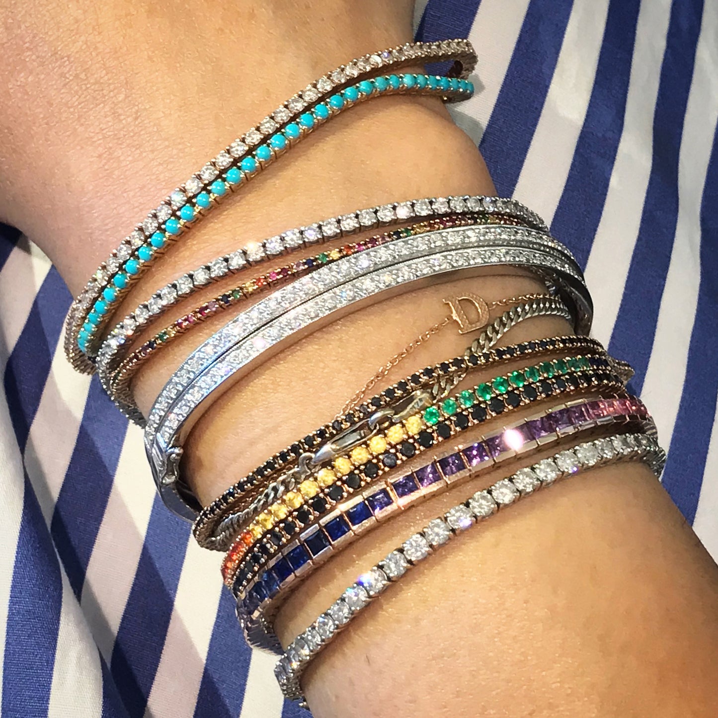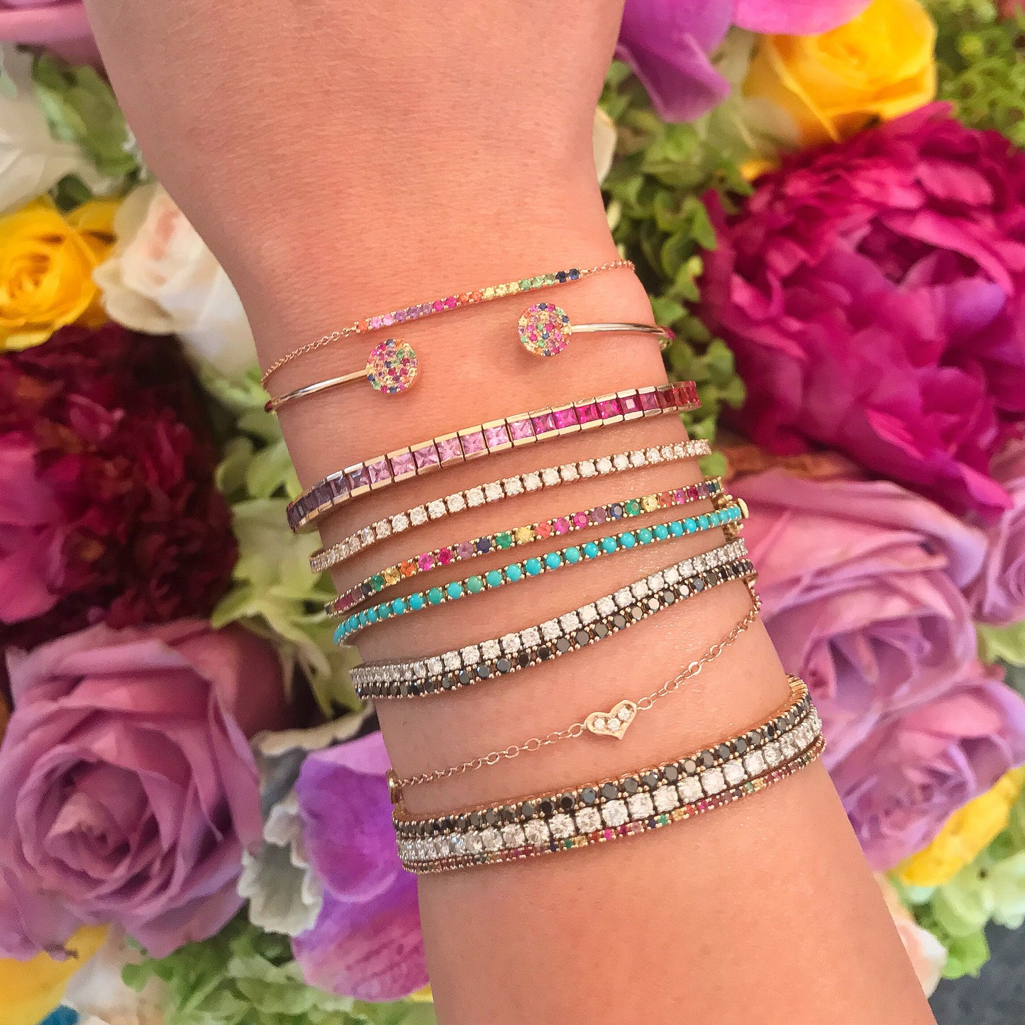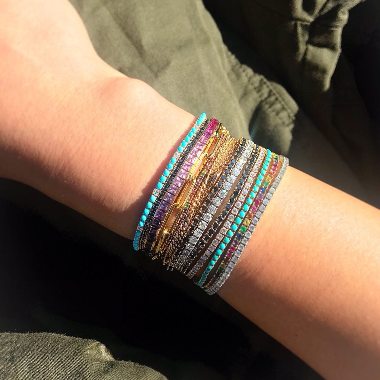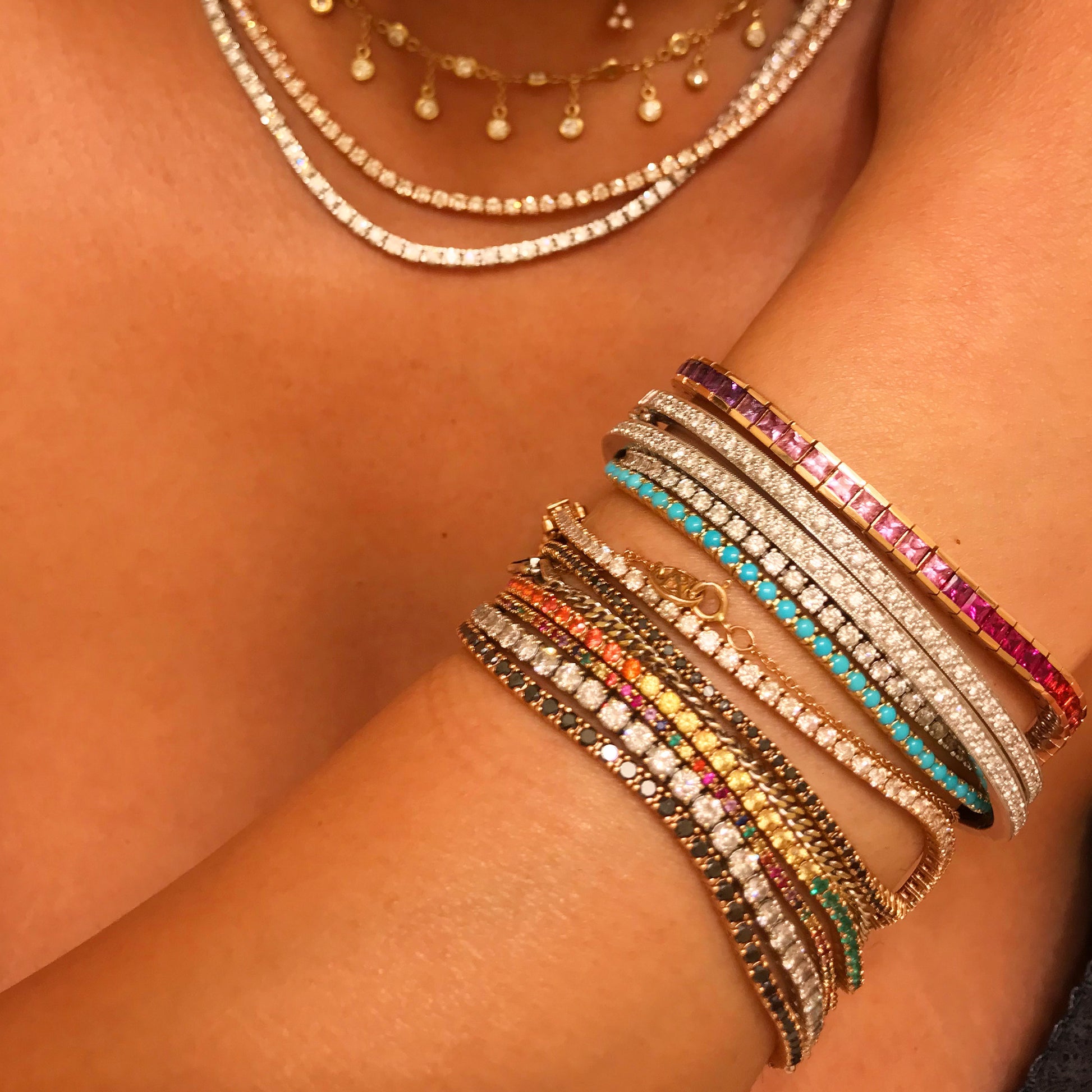 14K Gold Rainbow Sapphire Channel Set Tennis Bracelet