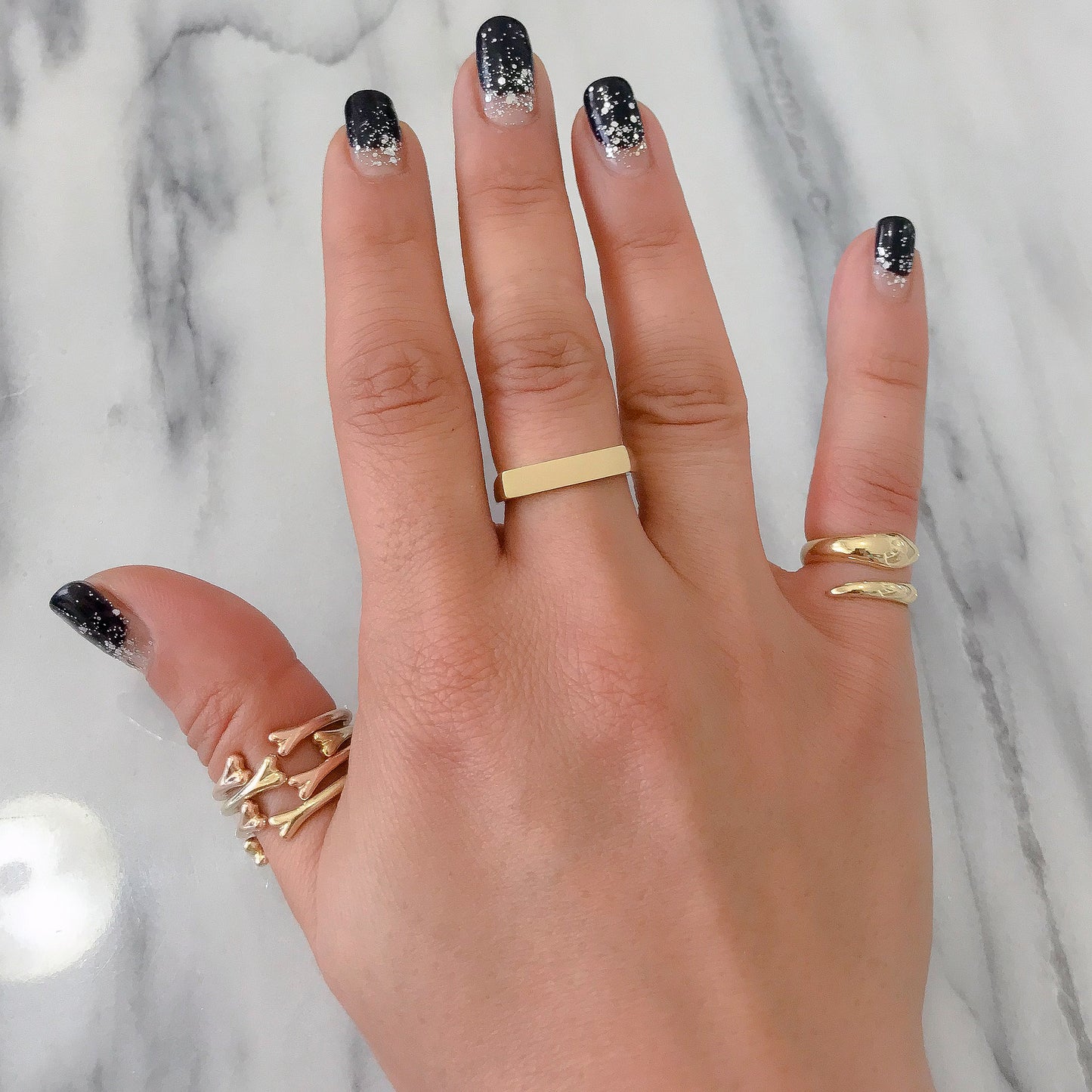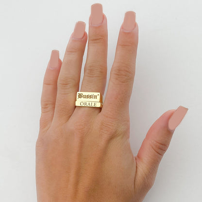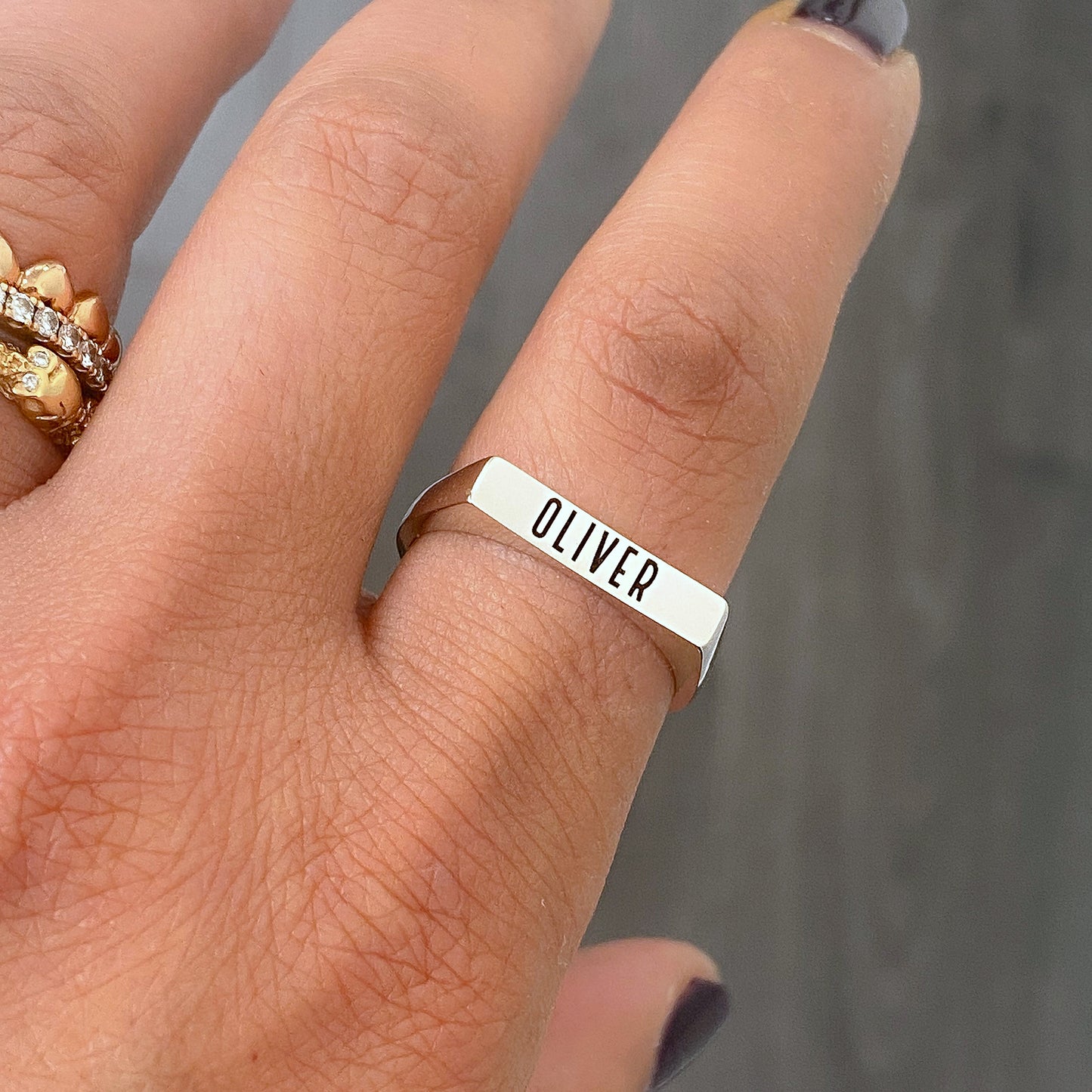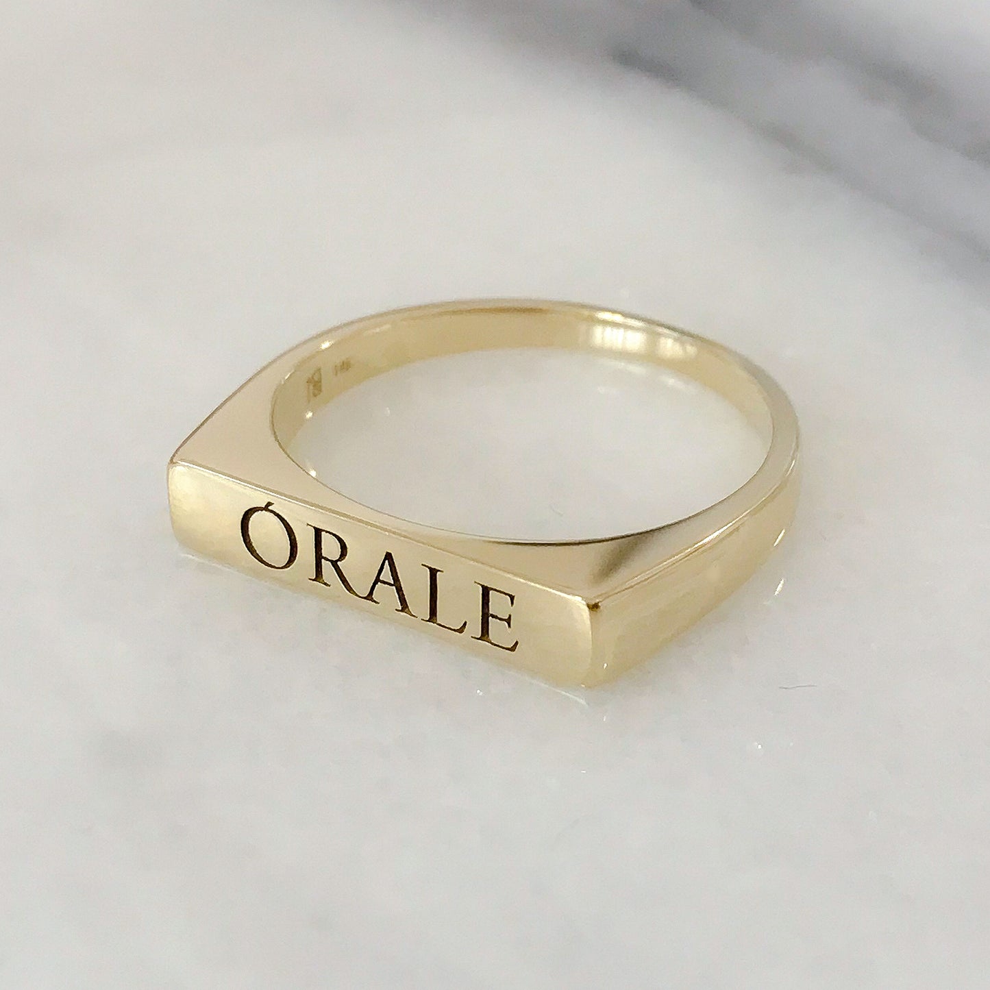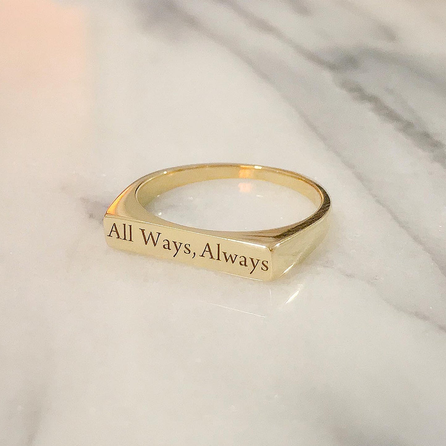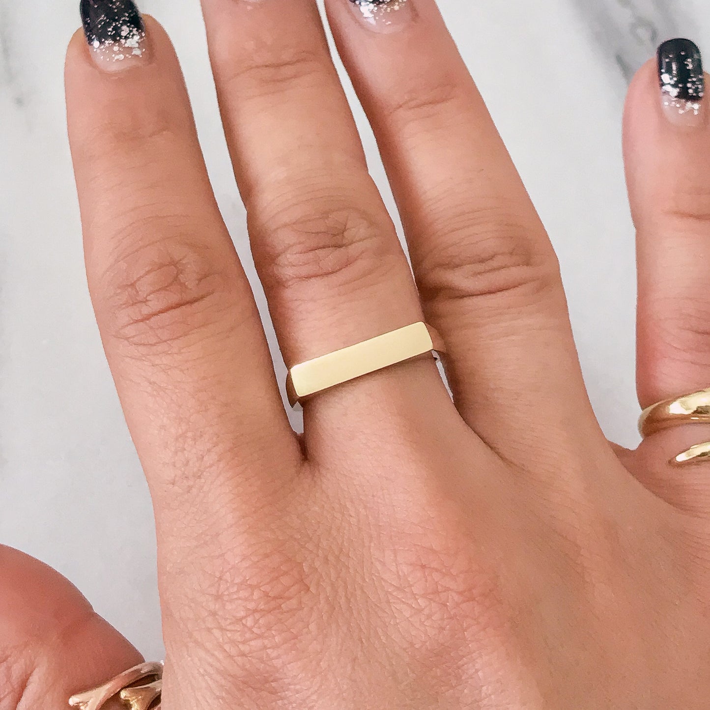 14K Gold Engravable Rectangle Signet Ring, Small Size