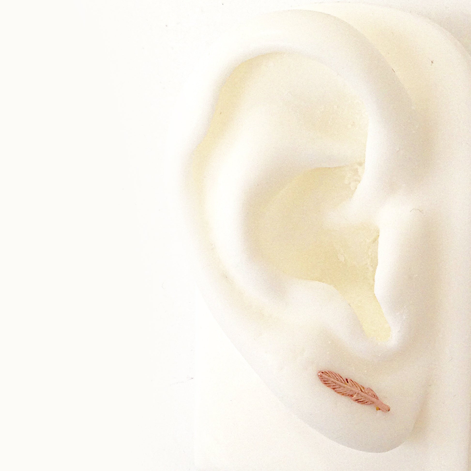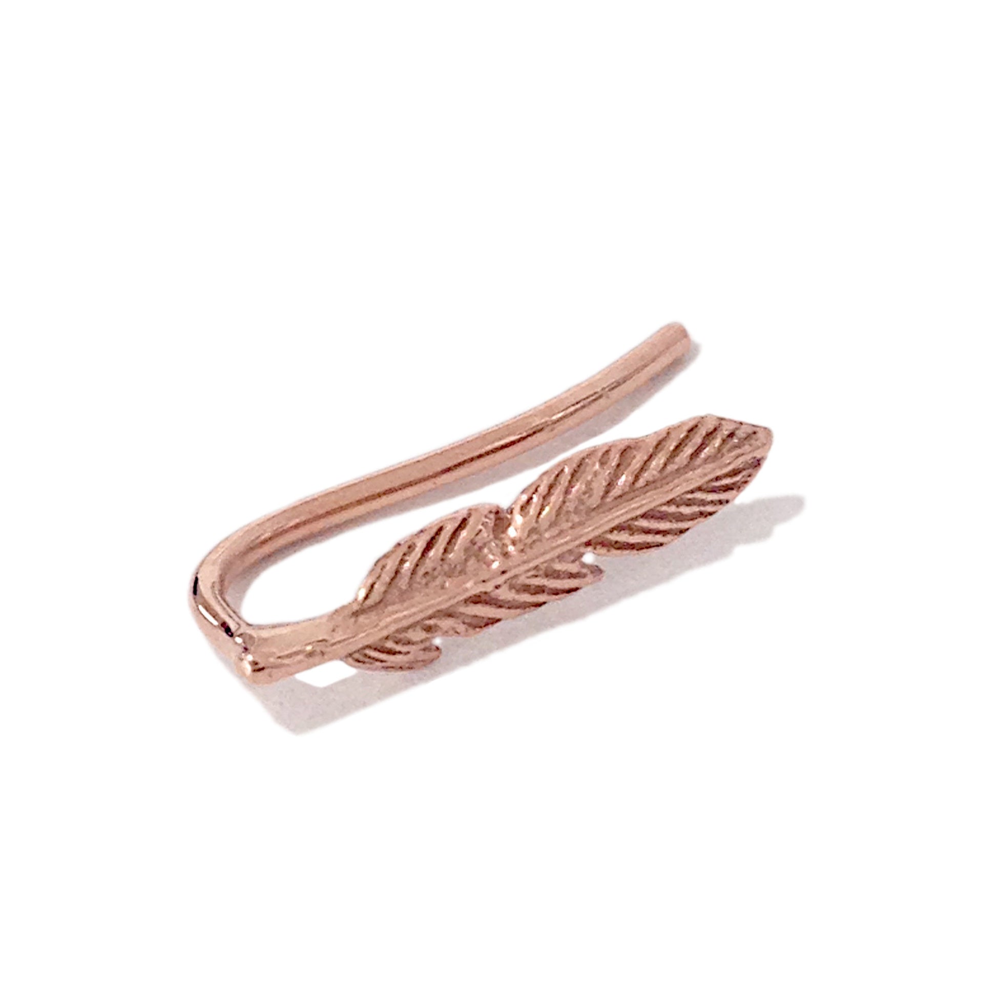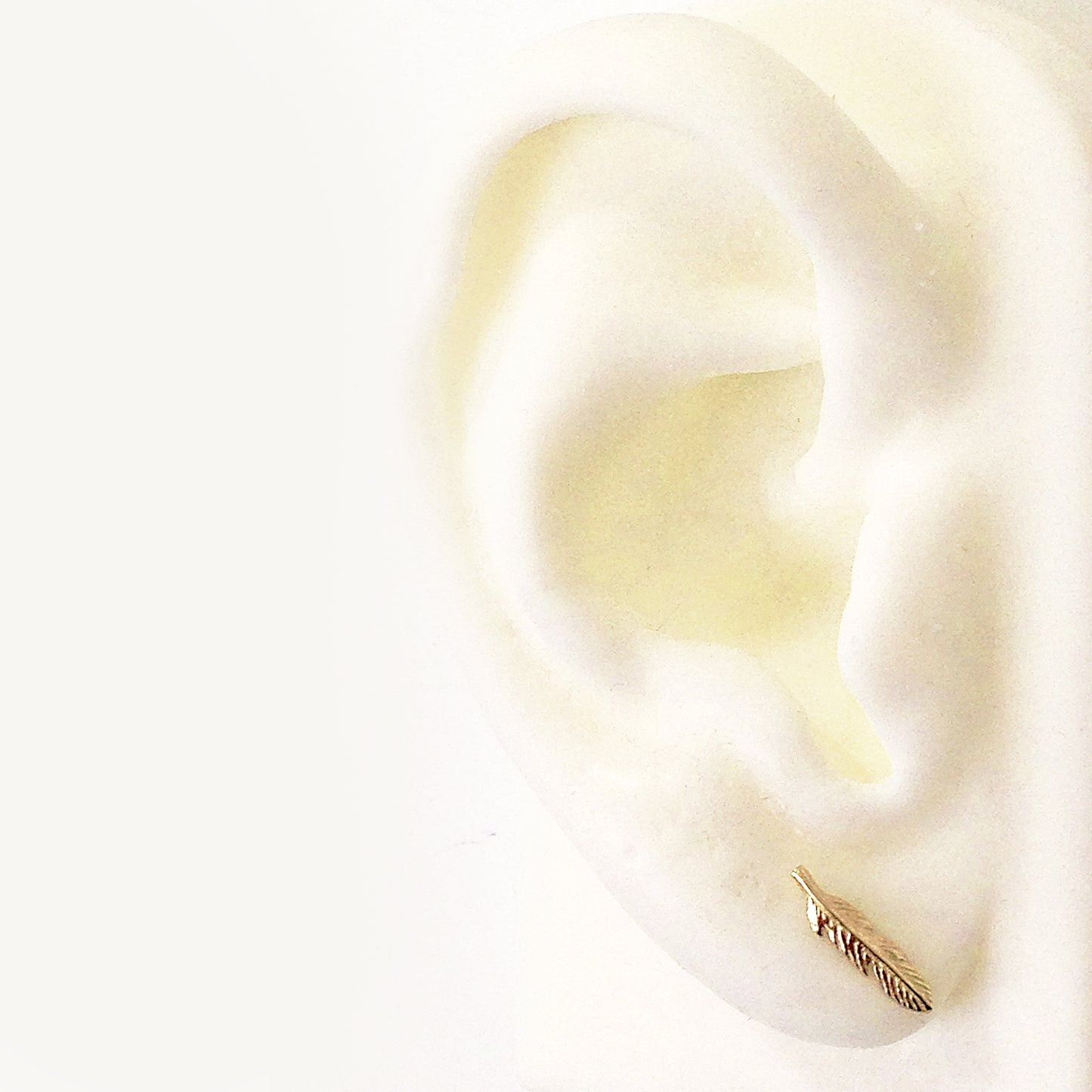 This detailed feather earring is composed of 14K solid gold. Comes with matching 14K solid gold secure earring backs.