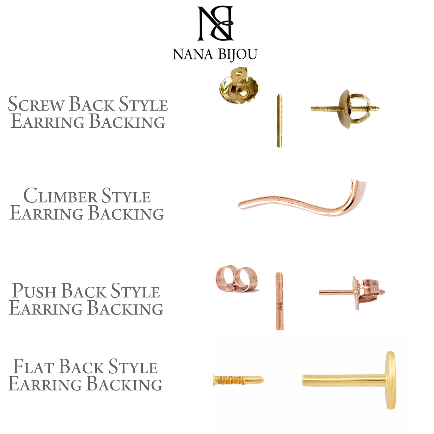 - Backing Type: your choice of Push Back, Flat Back, Screw Back or Climber Wire Back style backings