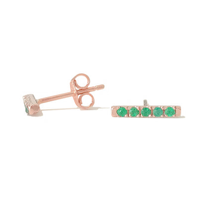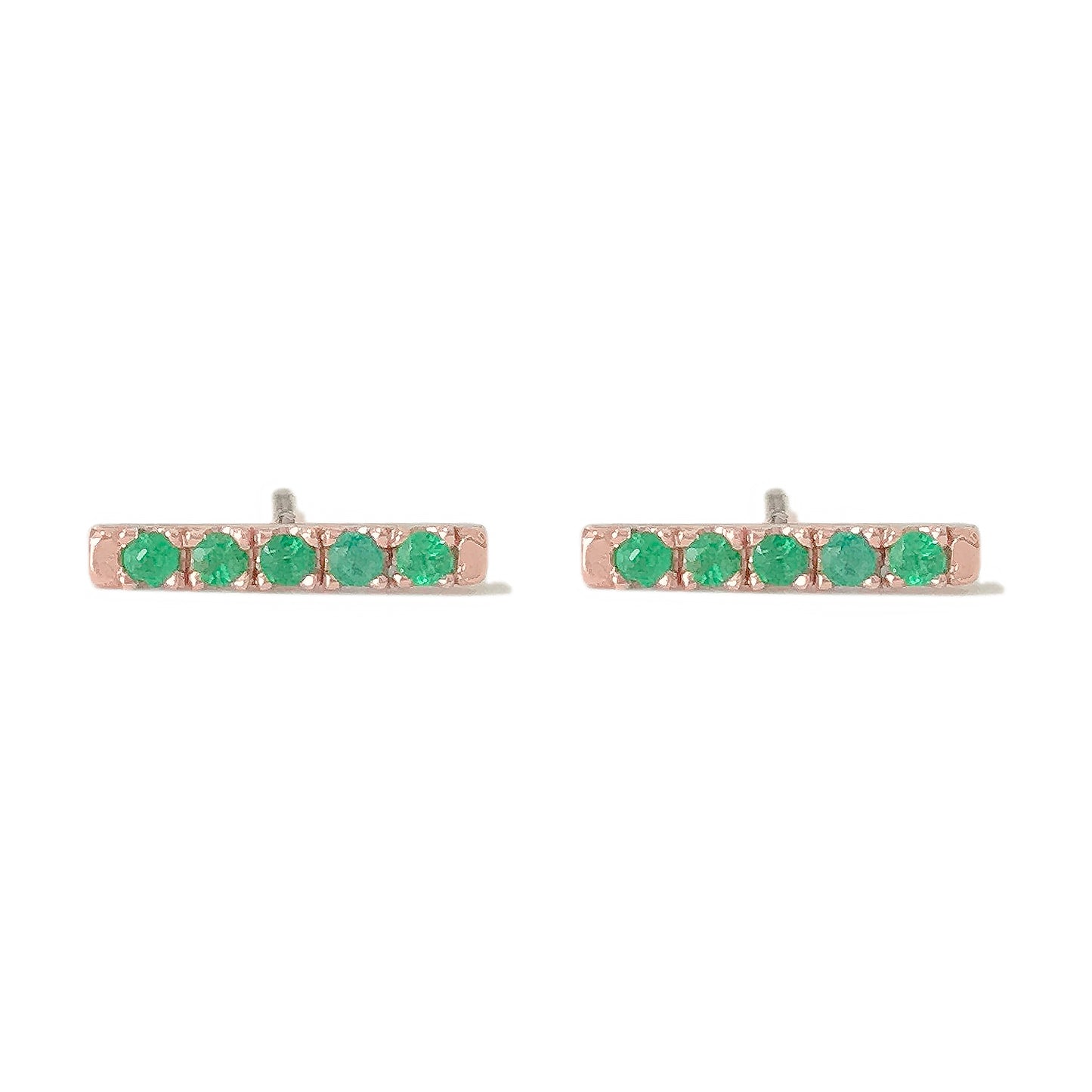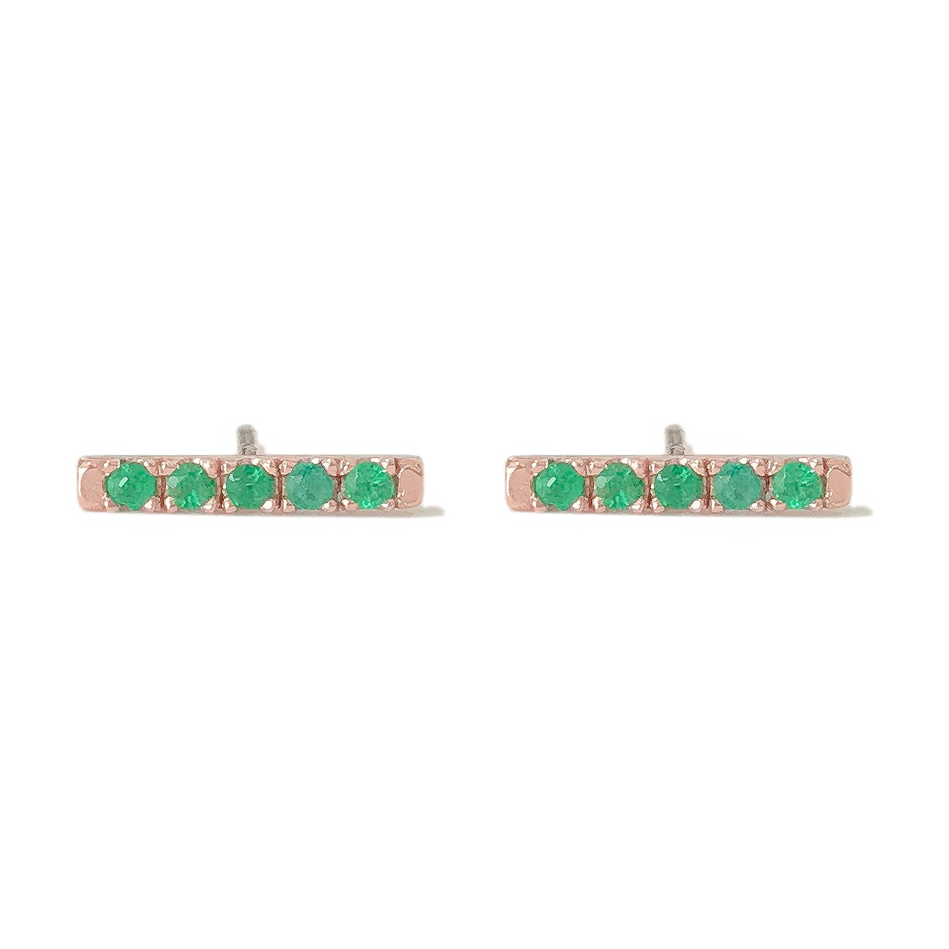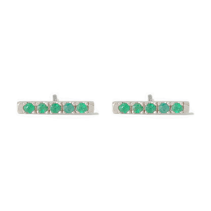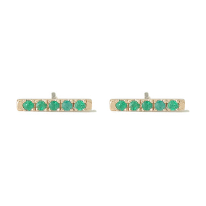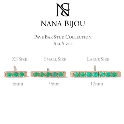 14K Gold Small Pavé Emerald Bar Stud Earrings