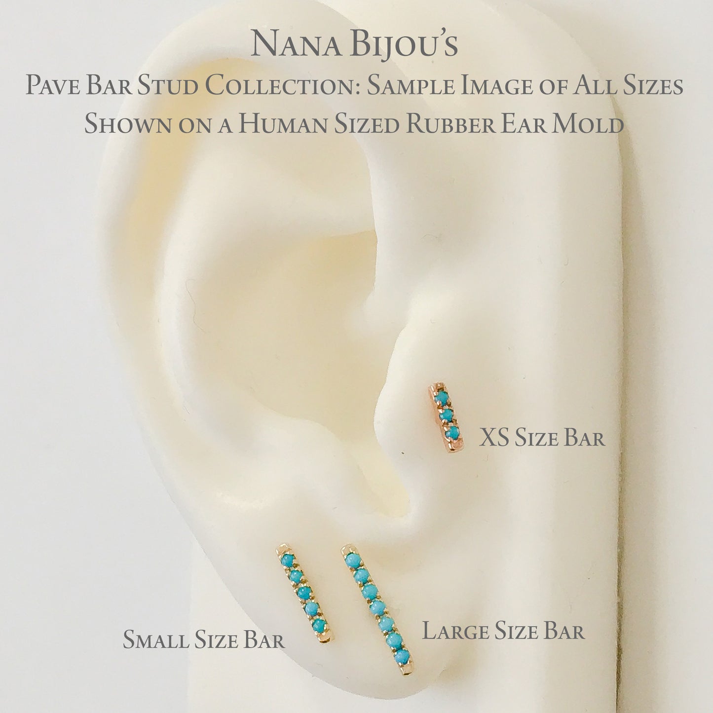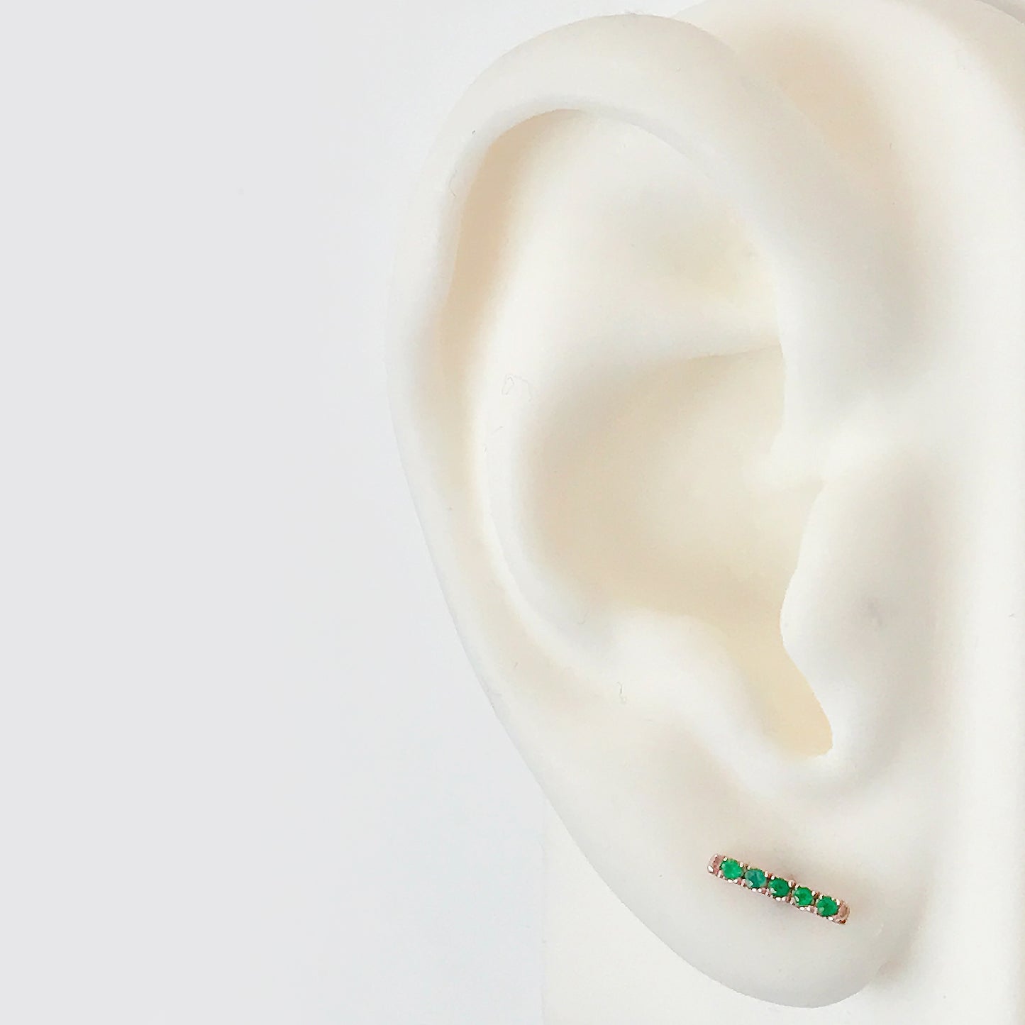 This finely handcrafted pavé Emerald bar stud earring is composed of 14K solid gold and AAA quality round brilliant cut natural real Emeralds. These beautiful earrings come with matching 14K solid gold backings.