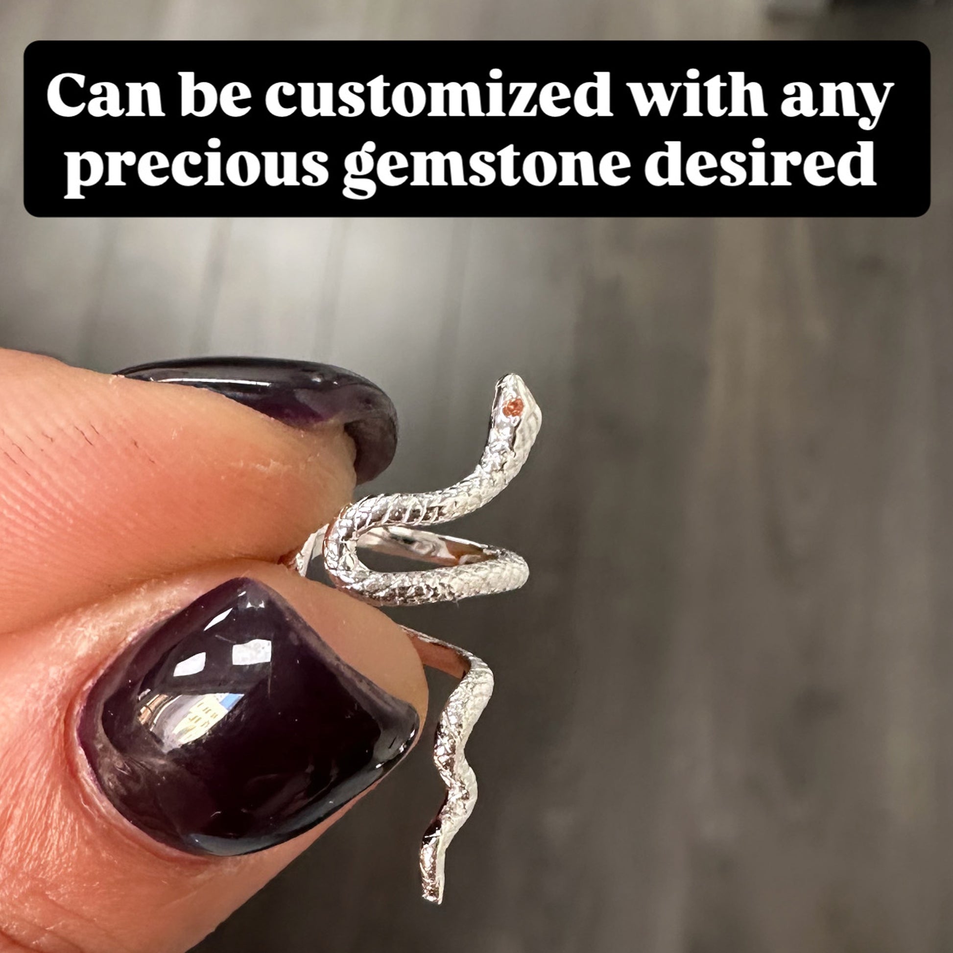This finely handcrafted detailed snake ear cuff is composed of 14K solid gold and accented with genuine AAA quality natural real emeralds in the eyes.  This lightweight & comfortable ear cuff needs no piercings as it slips on and off while wrapping around the helix/cartilage section of one's ear. And made thin enough to be adjustable to virtually fits all ear types.