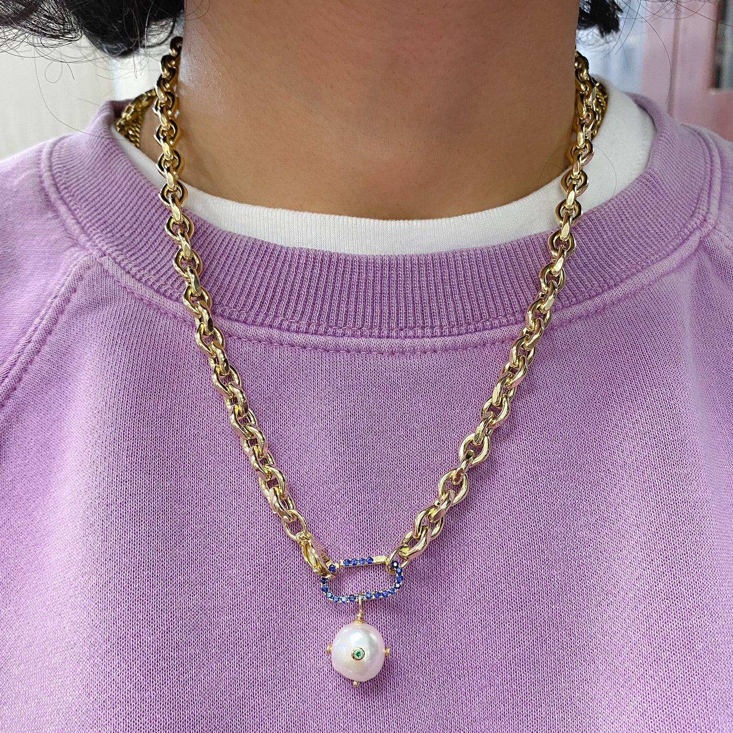 This Italian handcrafted chain link necklace is completely composed of 14K solid gold and is uniquely made with a semi-hollow interior for comfortable everyday wear that will not dent.