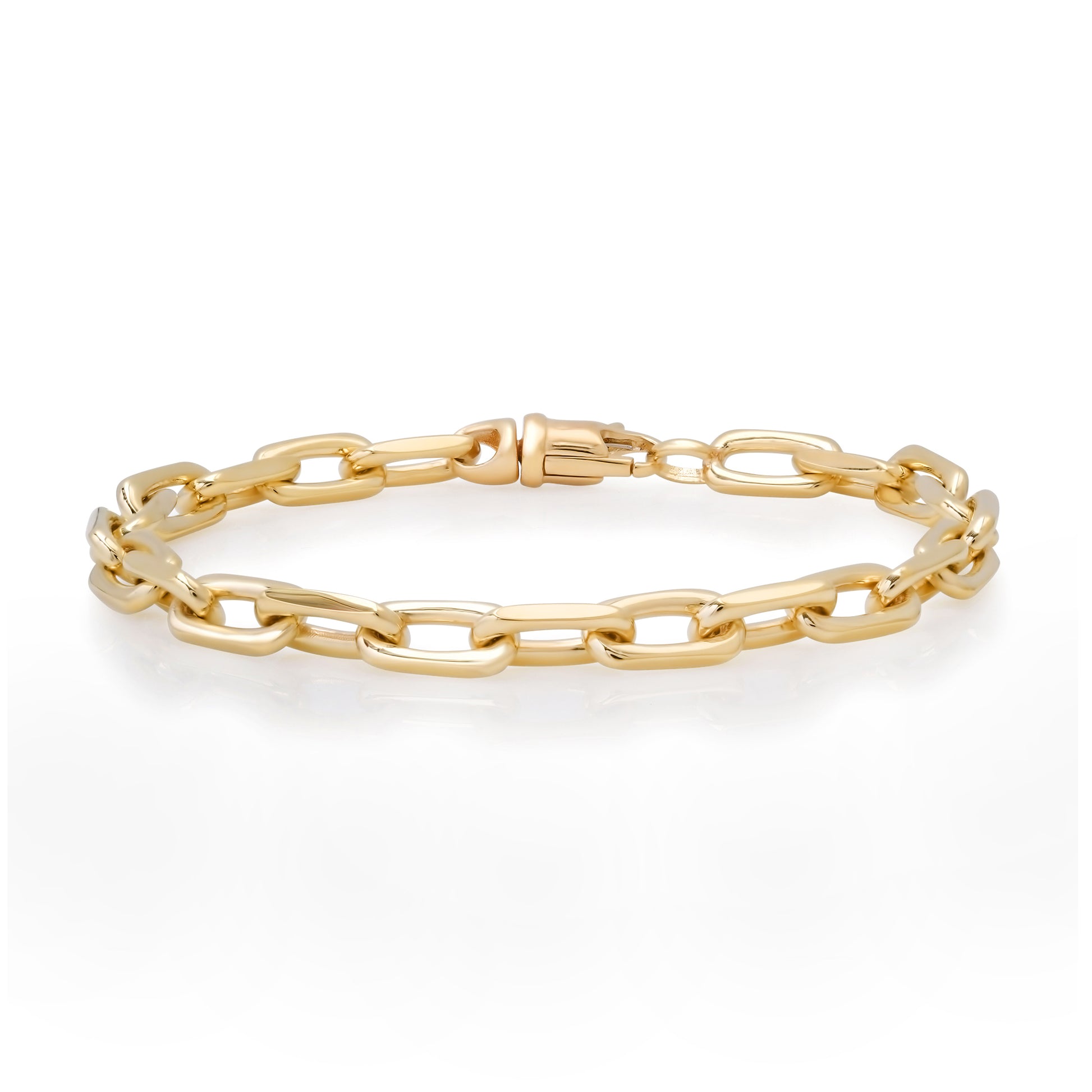 Expertly crafted from 14K solid gold throughout, this bracelet features substantial oval links that deliver a refined, weighty presence on the wrist. The solid construction ensures durability for daily wear while maintaining the timeless elegance of genuine gold craftsmanship.