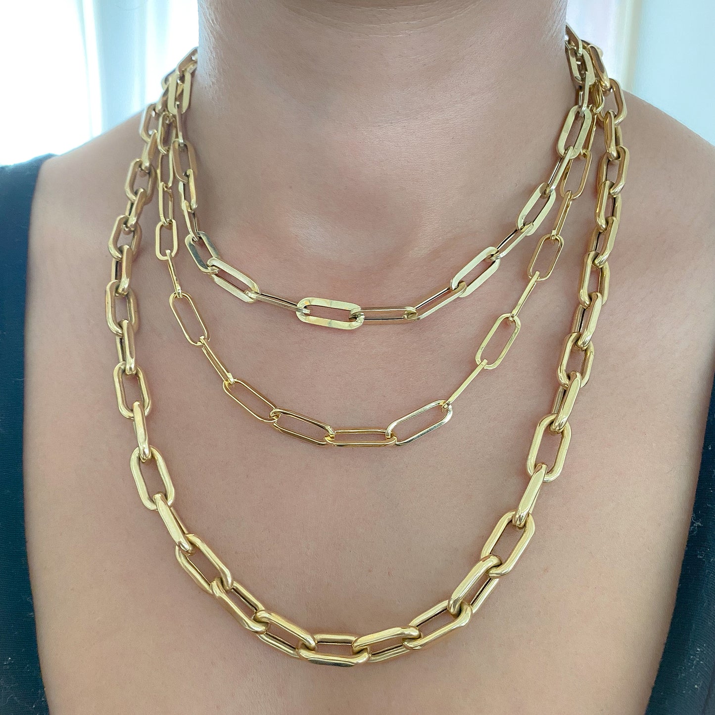 14K Gold Thin Flat Oval Link Chain Necklace, Large Size Link