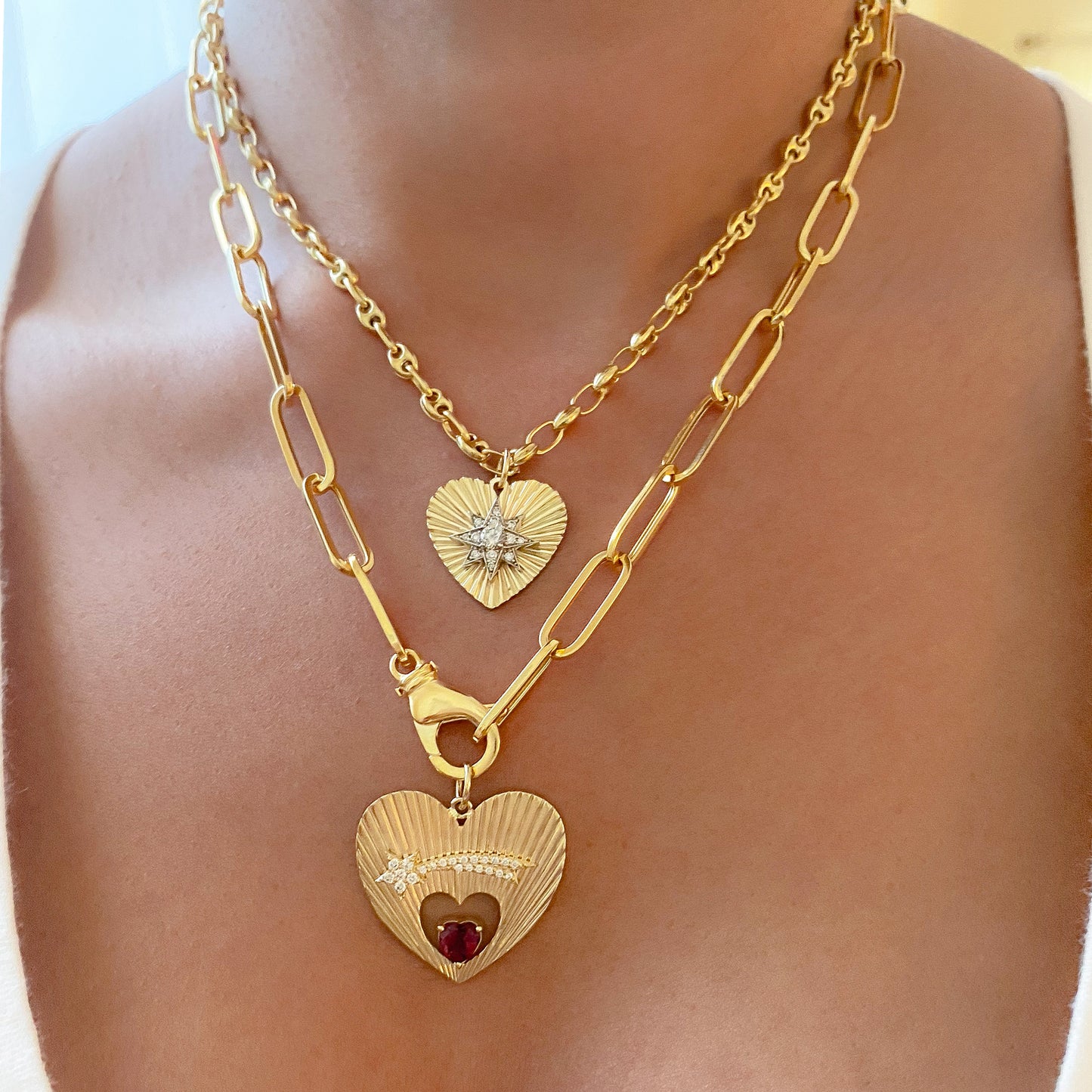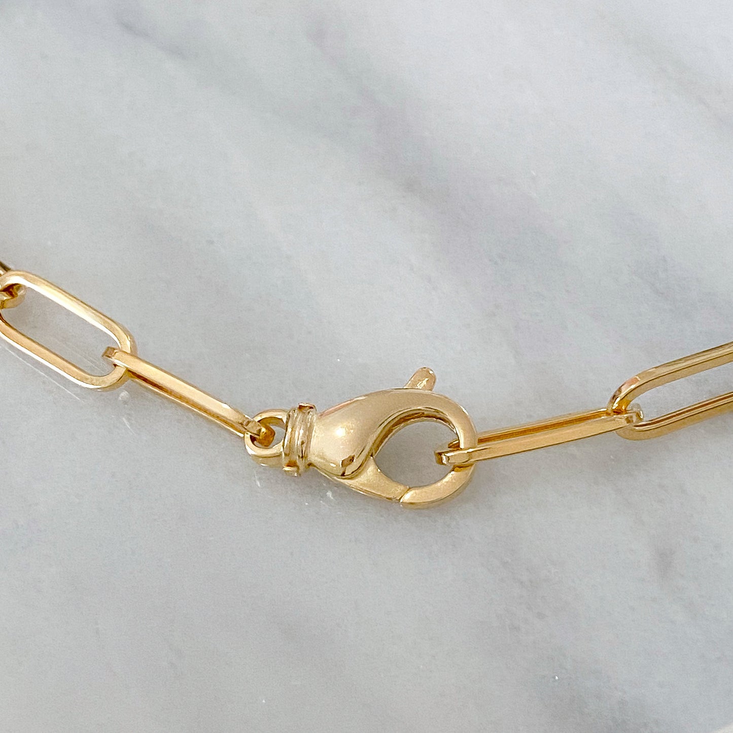 This Italian handcrafted chain link necklace is completely composed of 14K solid gold and is finished with a lobster claw clasp. The chain is adjustable in length due to the size of clasp and links.