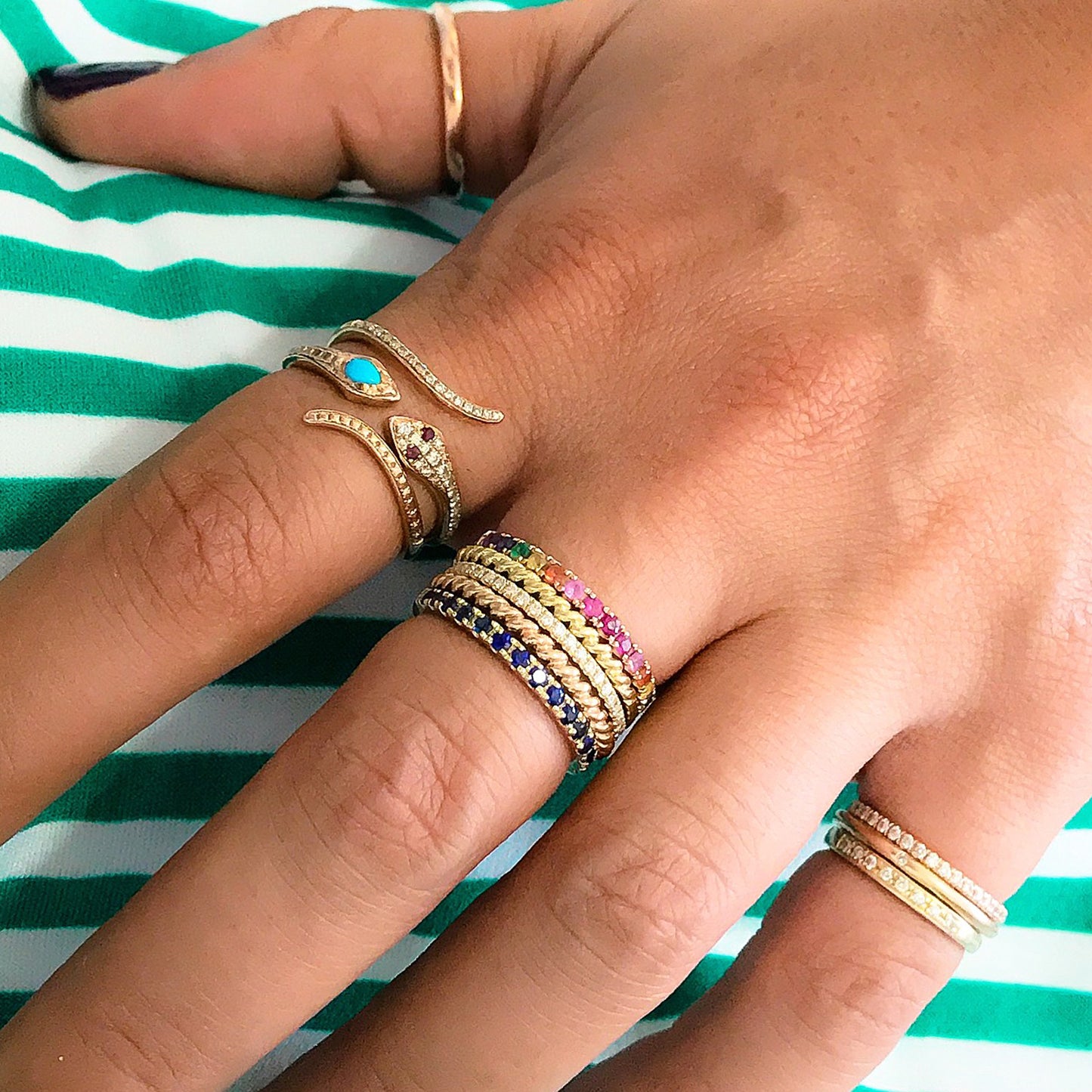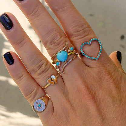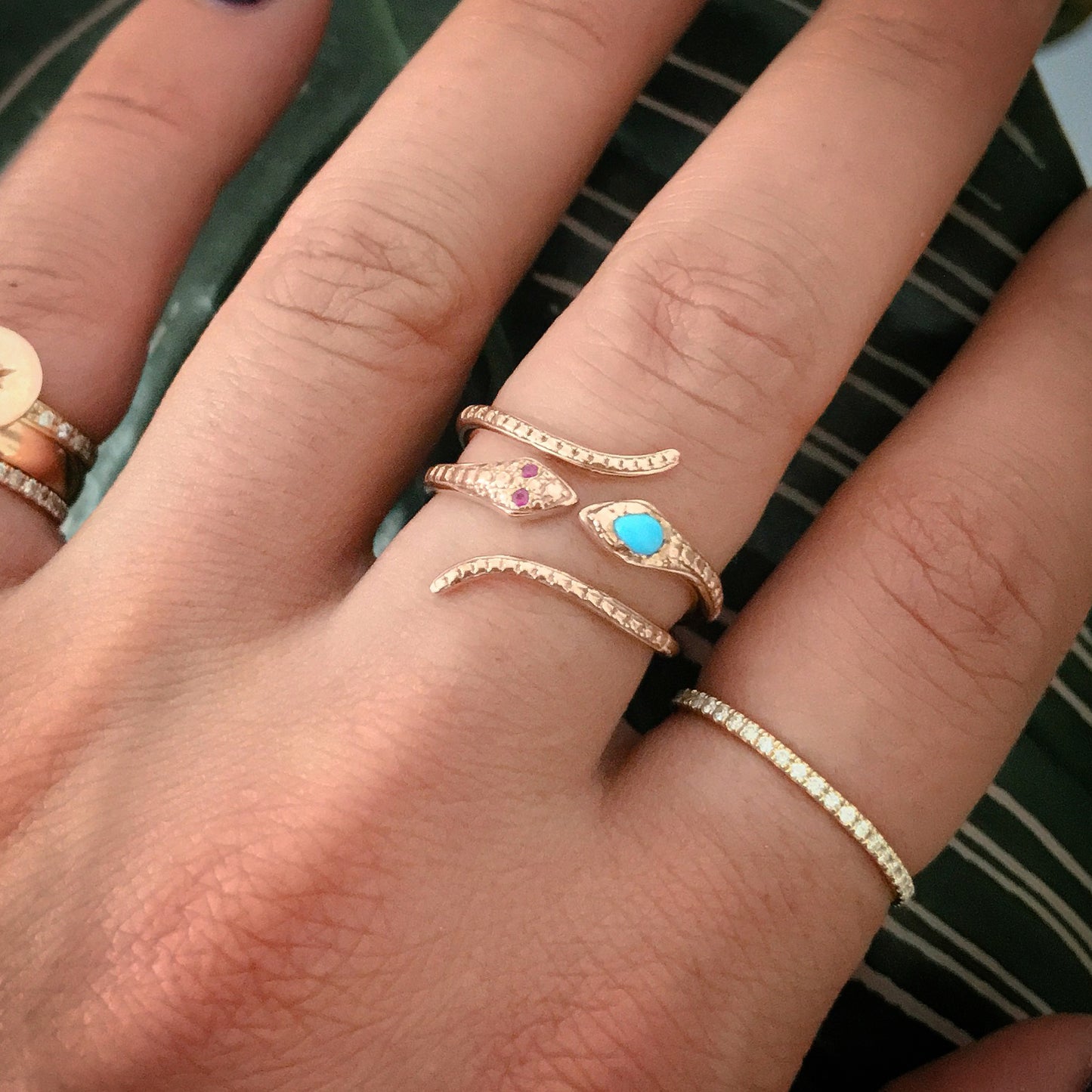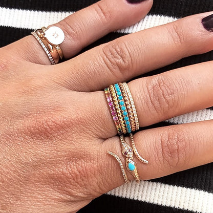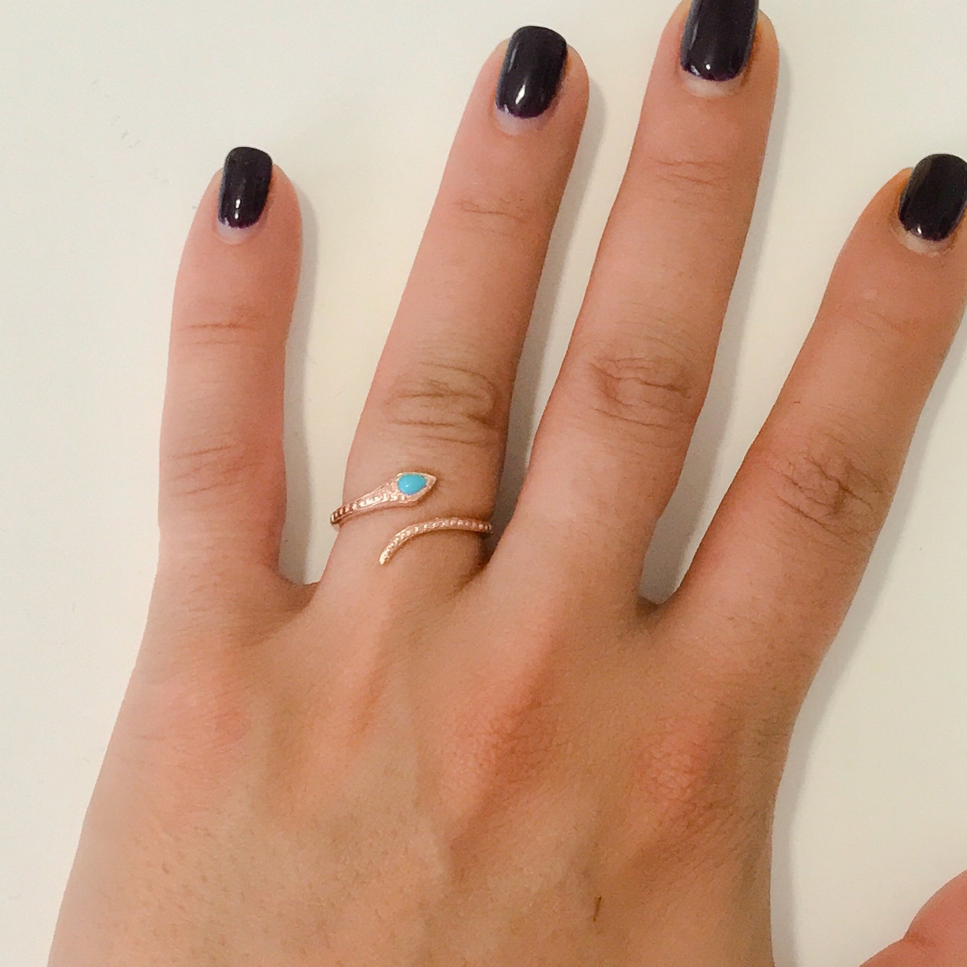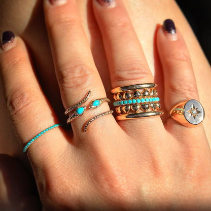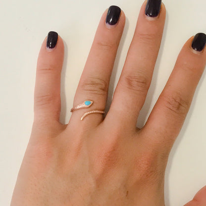 14K Gold Thin Snake Wrap Bypass Ring with Turquoise Cobra Head