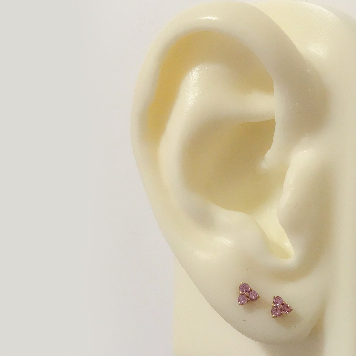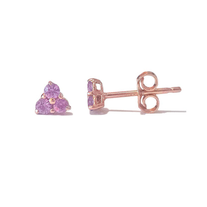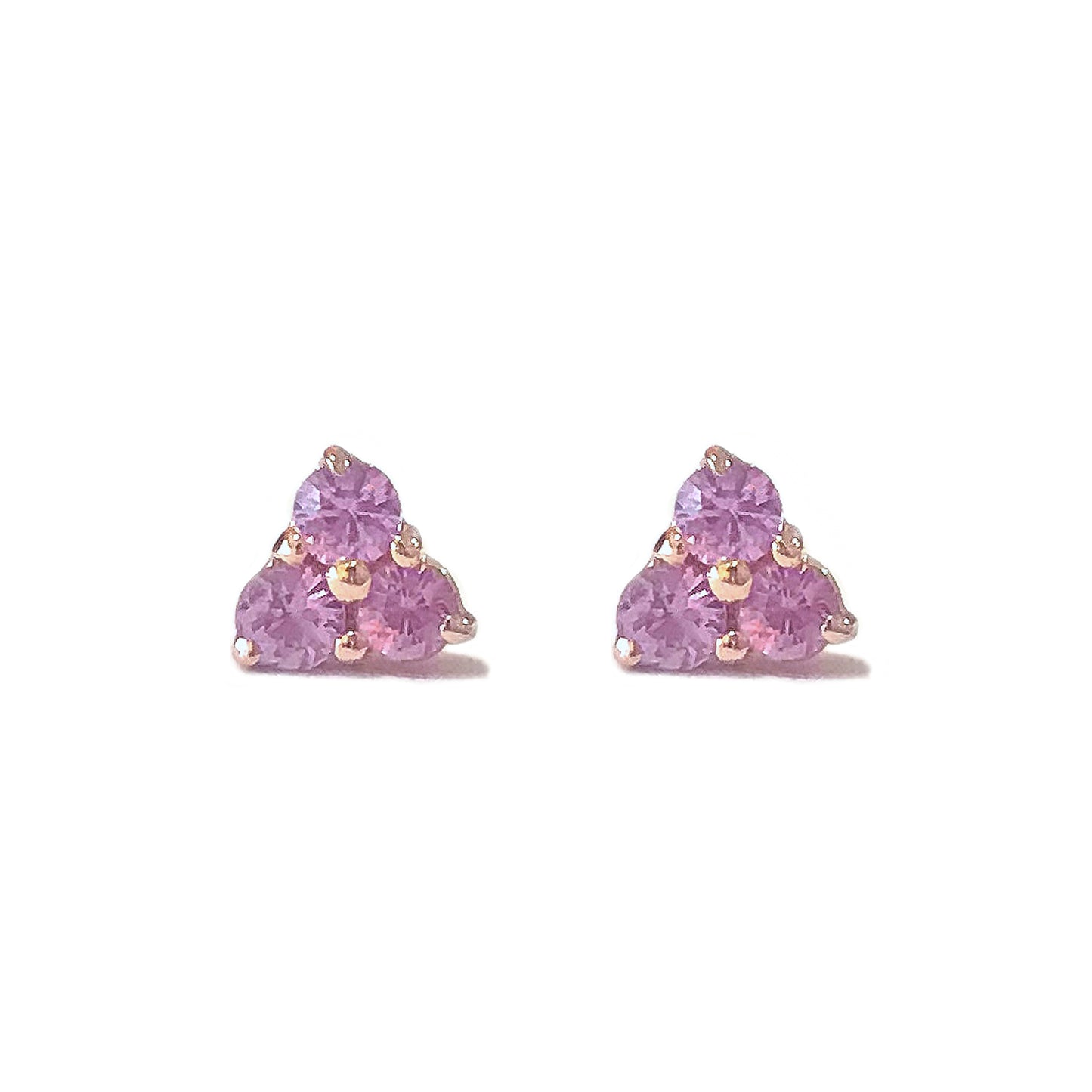 14K Gold Triple Purple Sapphire Trinity Cluster Stud Earrings