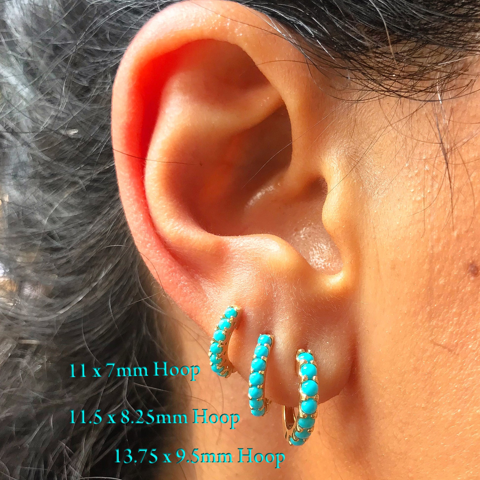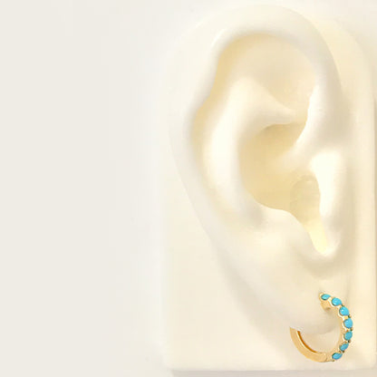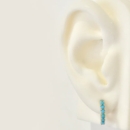 14K Gold Turquoise Gemstone Thick Huggie Hoop Earrings (13.75mm x 9.5mm)