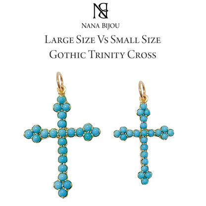 14K Gold Turquoise Gothic Trinity Cross Necklace ~ Large Size