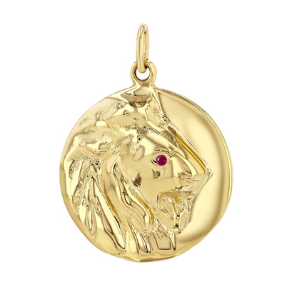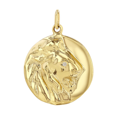 14K Gold Lion Medallion Charm Pendant, XL Size
