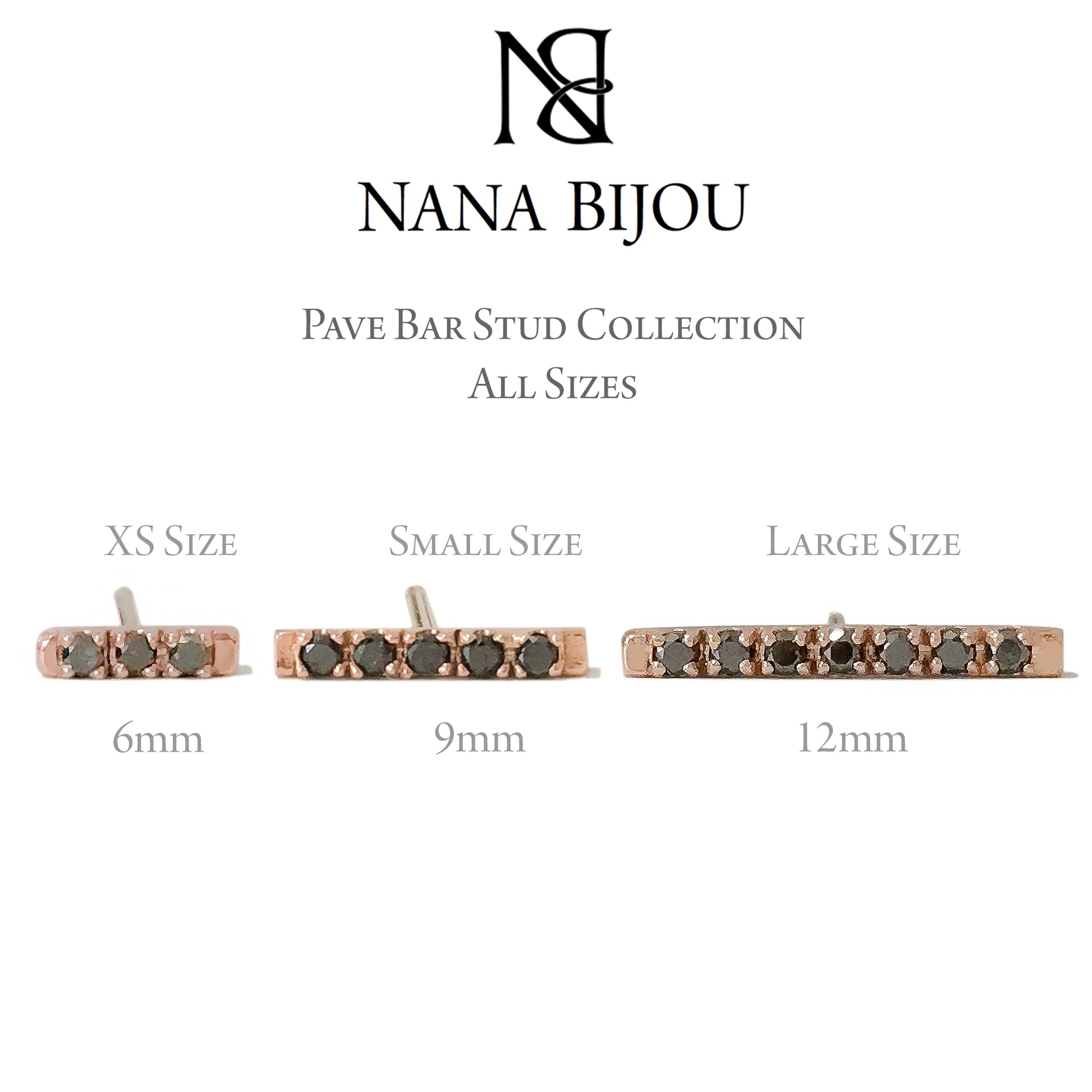 14K Gold XS Pavé Black Diamond Bar Stud Earrings