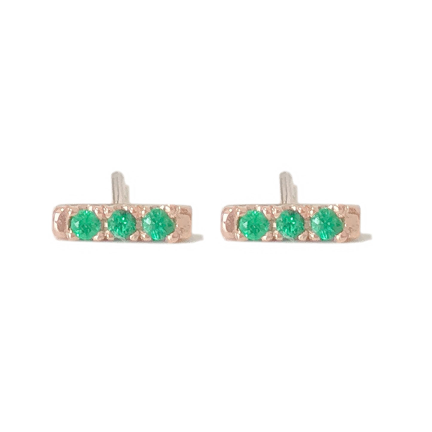 This finely handcrafted pavé Emerald bar stud earring is composed of 14K solid gold and genuine AAA quality round brilliant cut natural real Emerald gemstones. These beautiful earrings come with matching 14K solid gold backings.