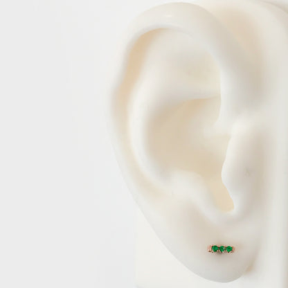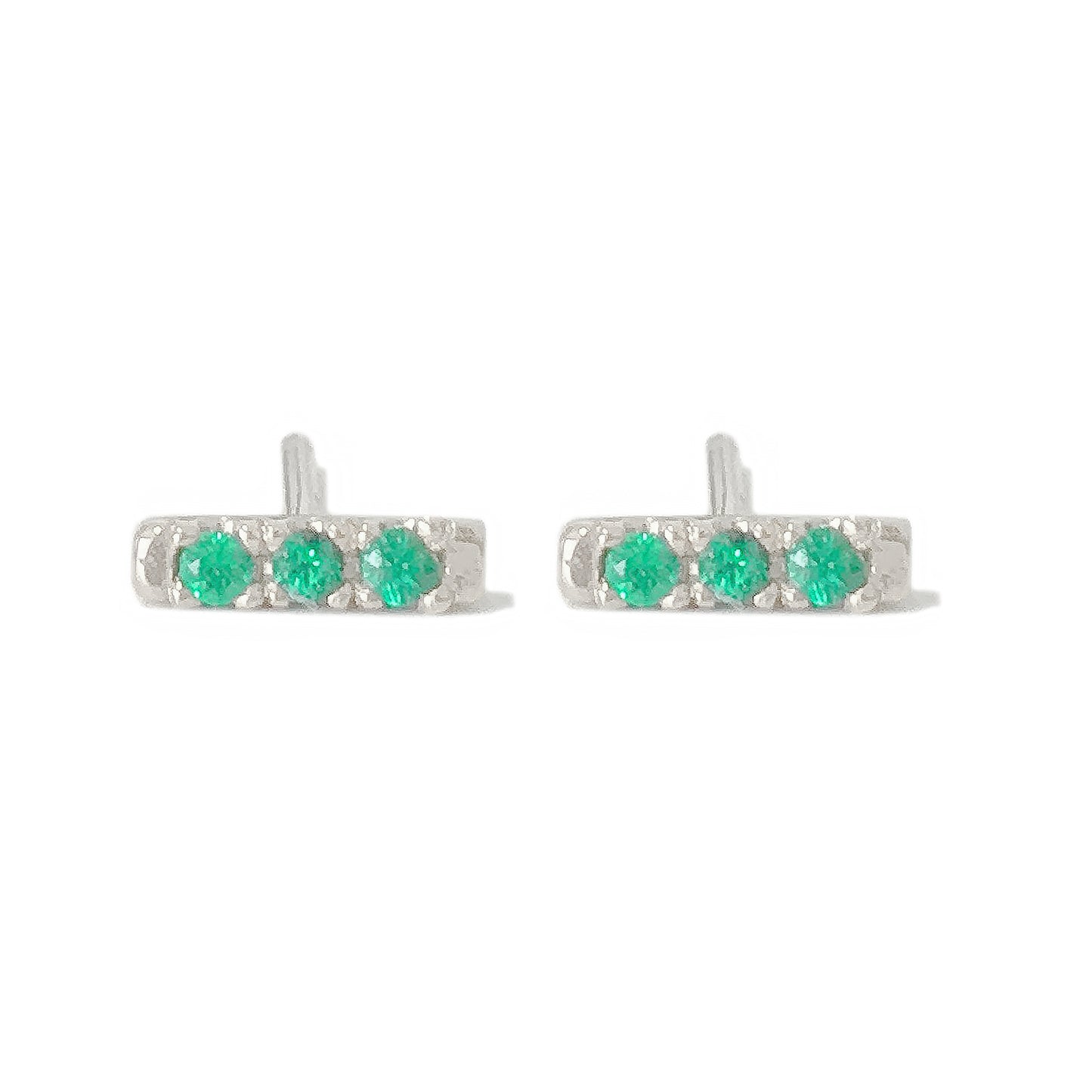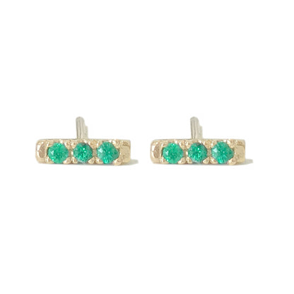 14K Gold XS Pavé Emerald Bar Stud Earrings