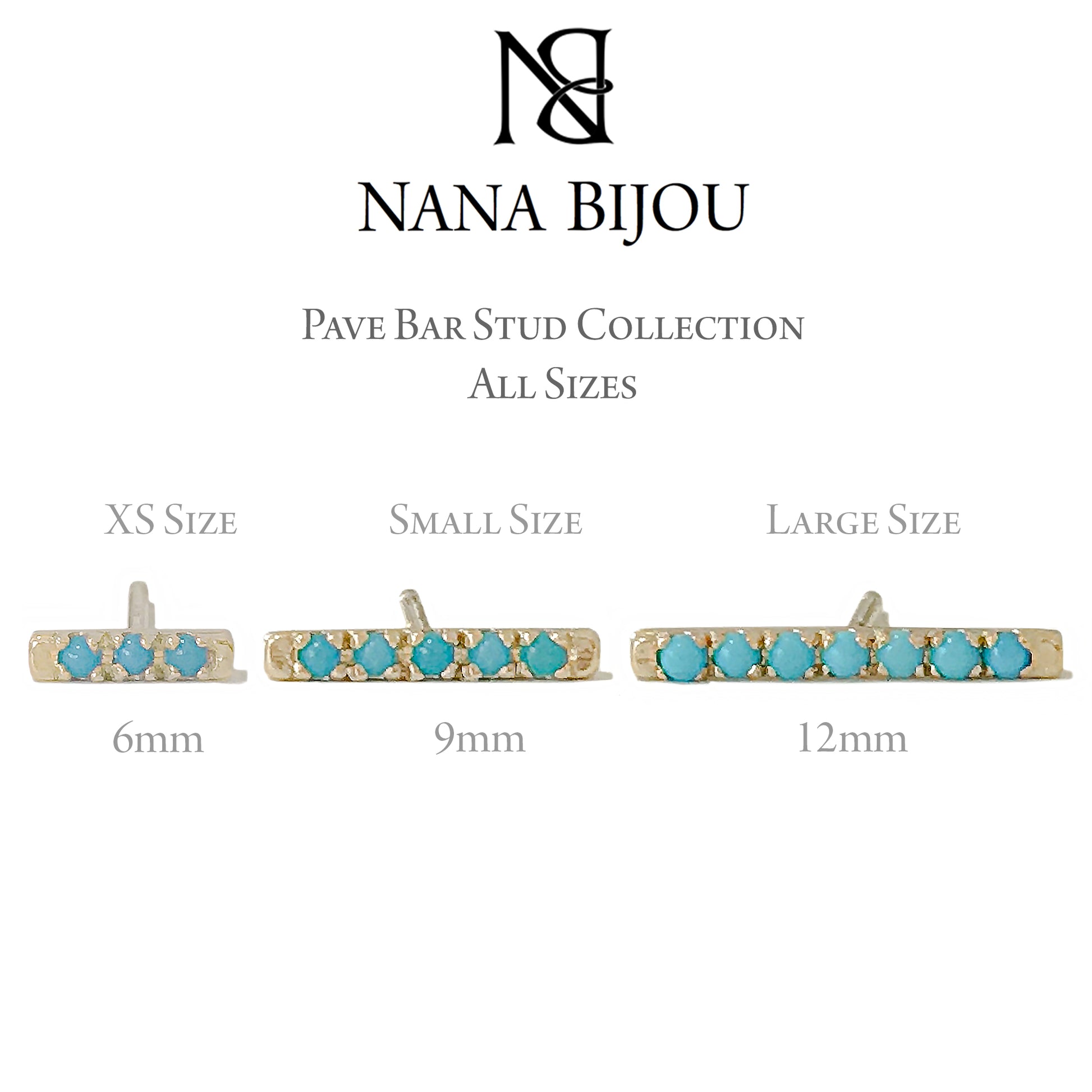 This finely handcrafted pavé Turquoise bar stud earring is composed of 14K solid gold and genuine AAA quality round cabochon cut natural real Arizona Turquoise gemstones. These beautiful earrings come with matching 14K solid gold backings.