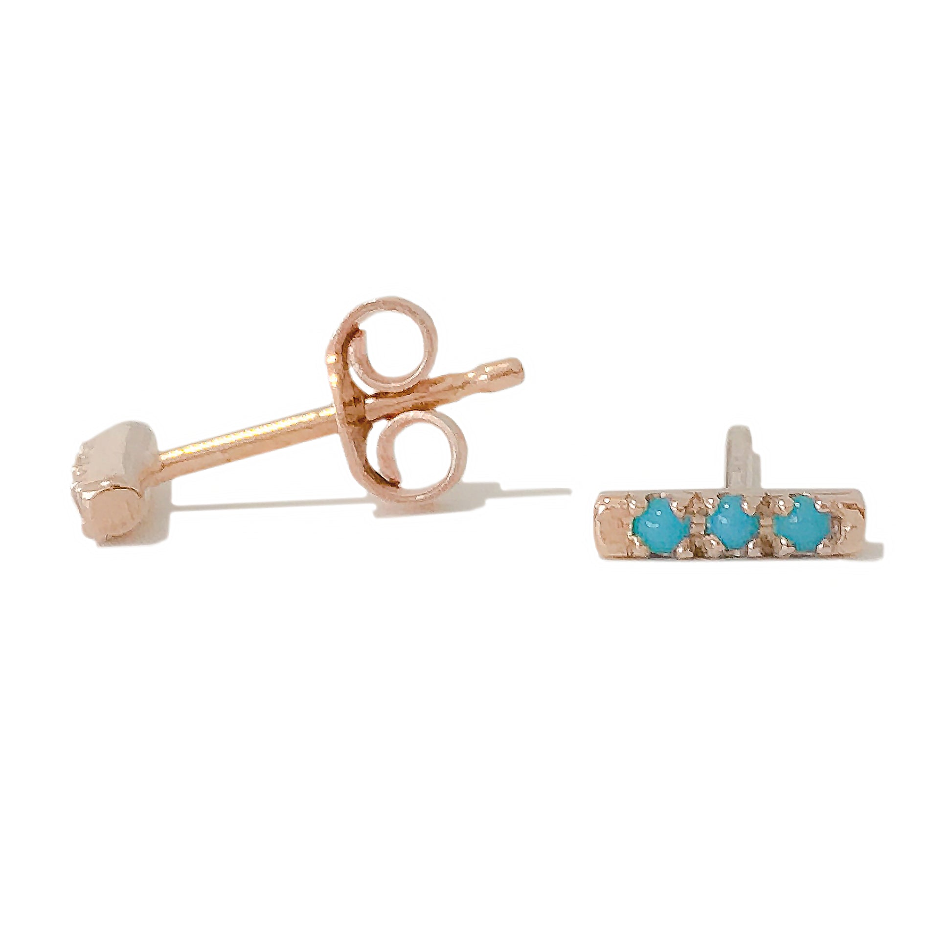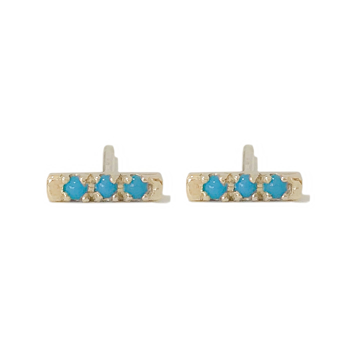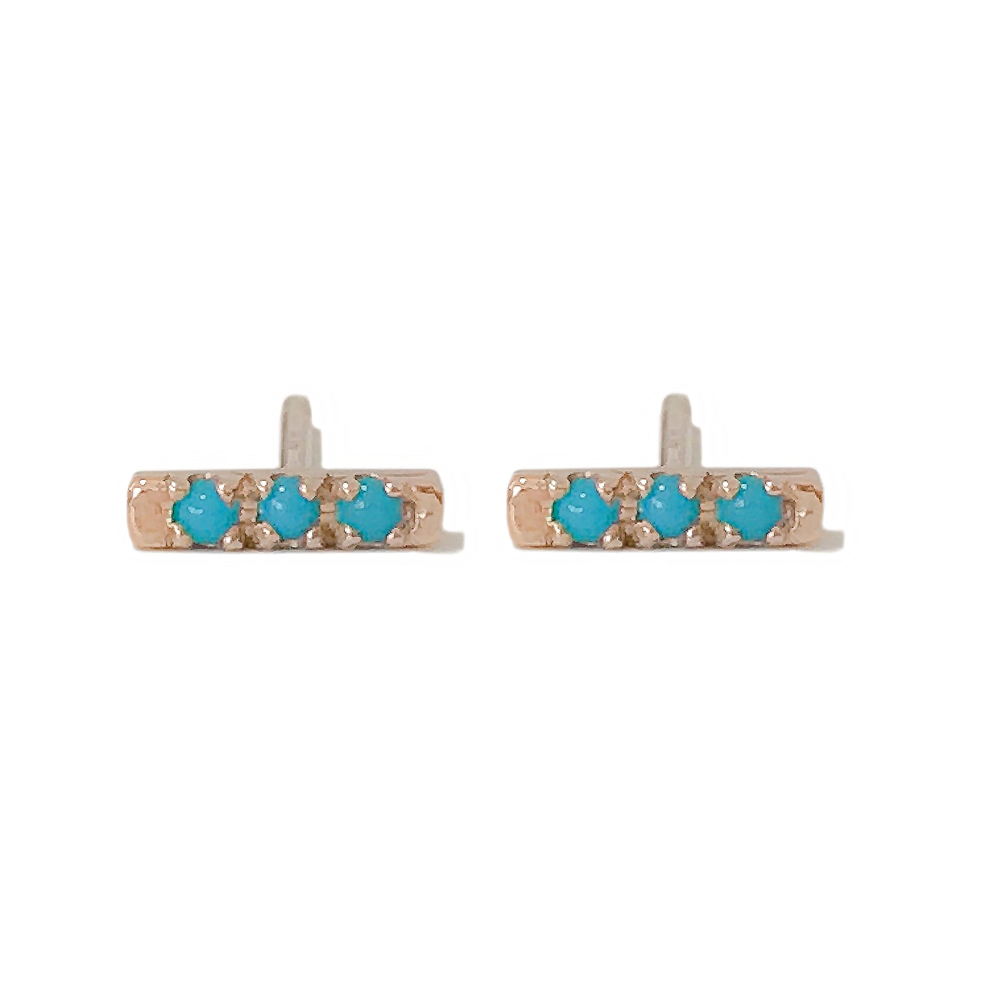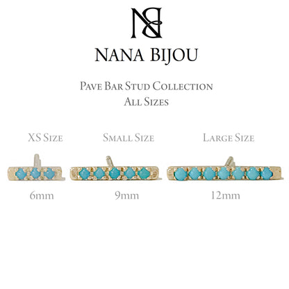 14K Gold XS Pavé Turquoise Bar Stud Earrings