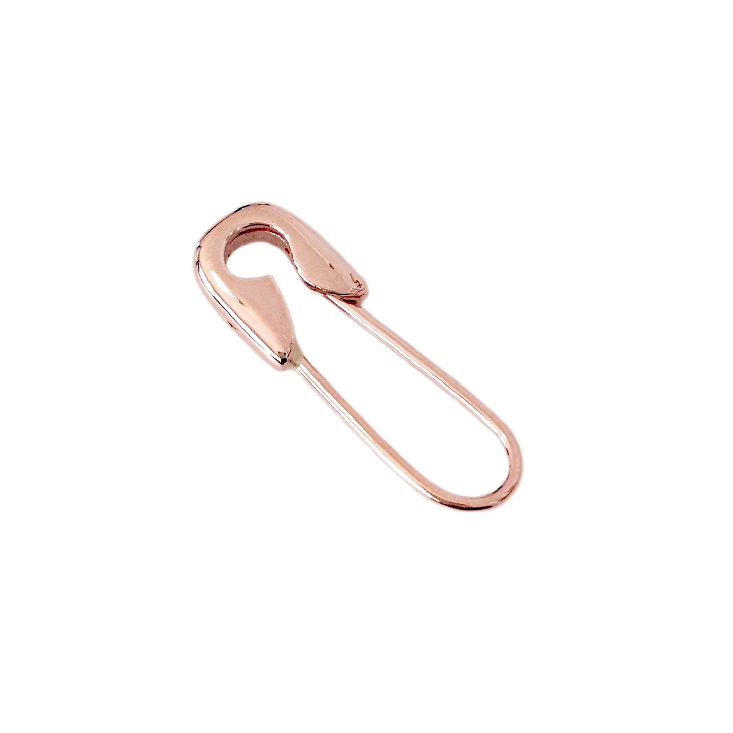 This unique safety pin style brooch is completely composed of 14K solid gold. The brooch is designed with a strong wire so that it is sharp enough to pierce through virtually any fabric and versatile so that any personal or Nana Bijou charm can be easily added through to dangle from the pin for a more personalized statement.