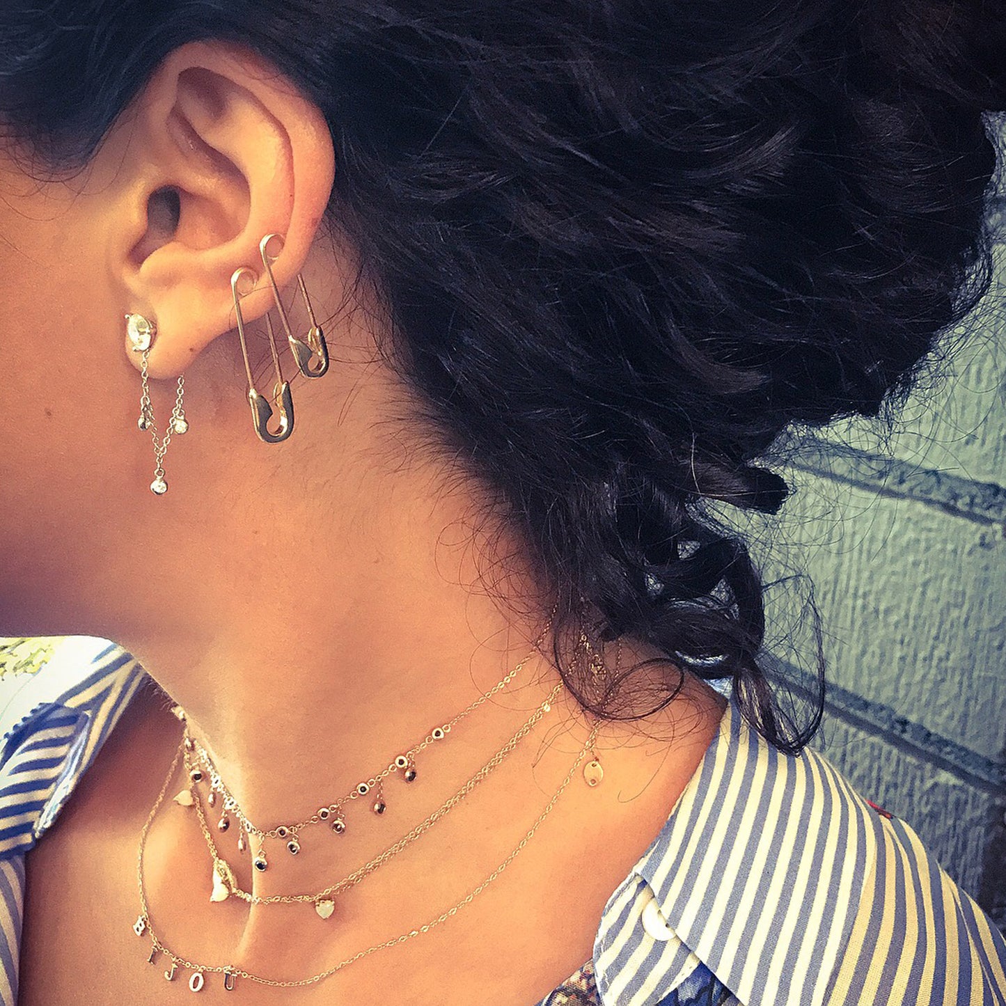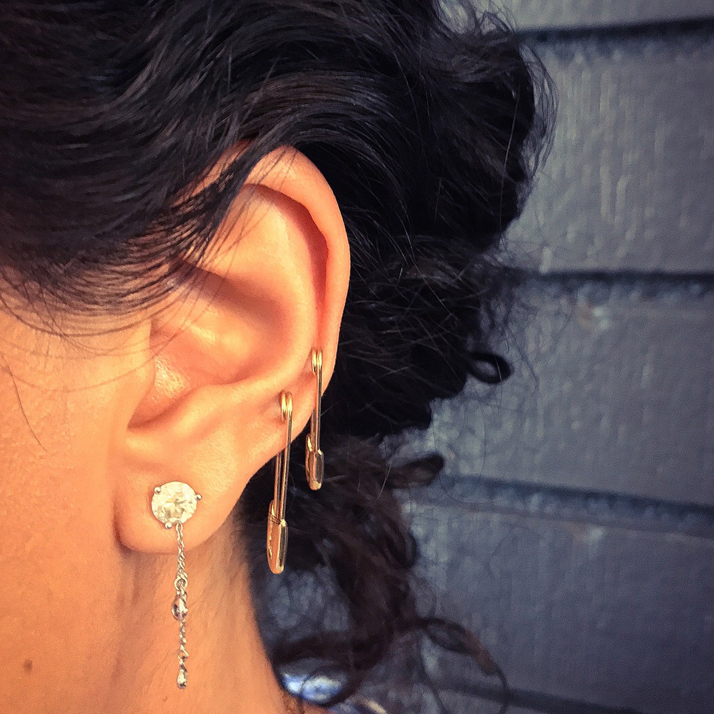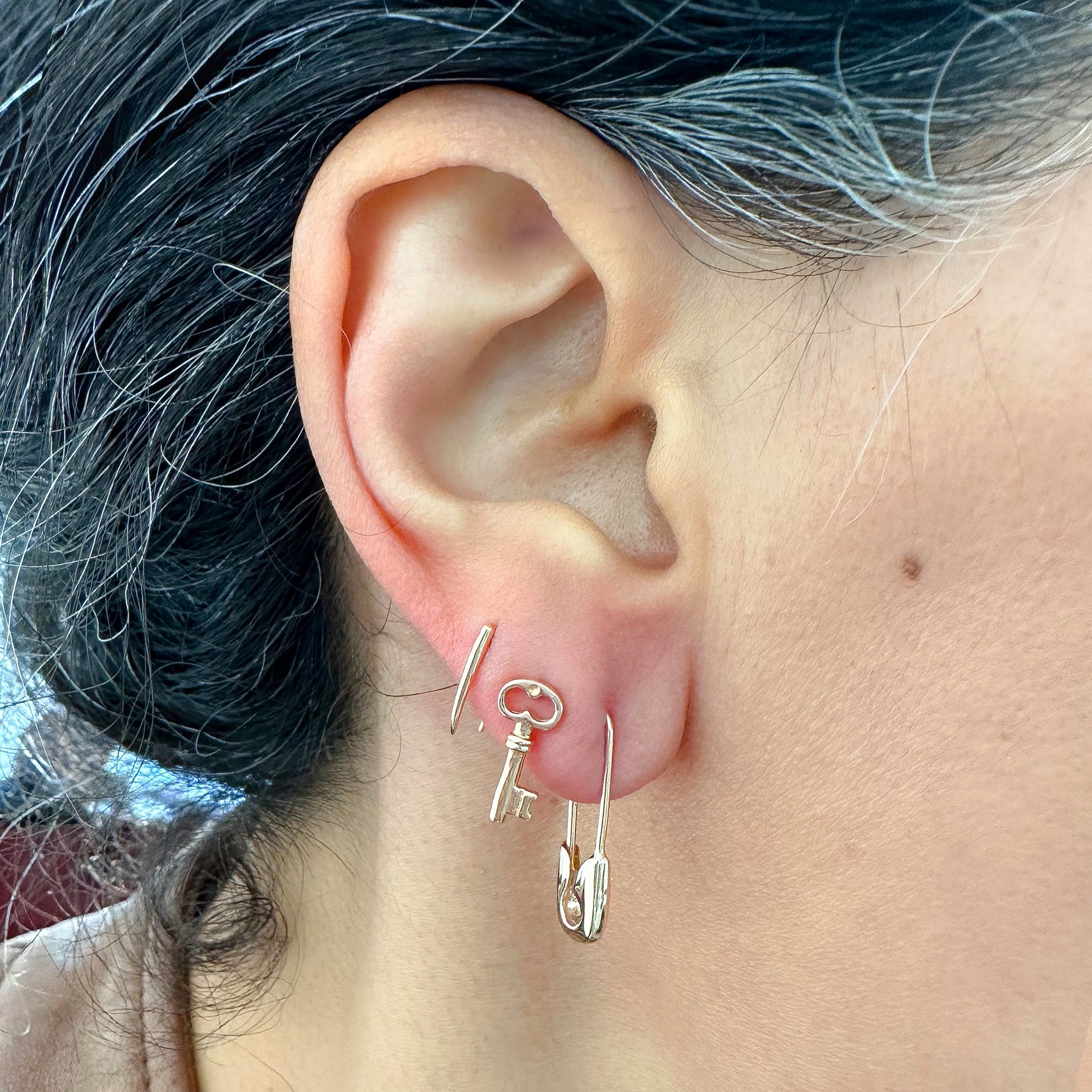 This darling safety pin style earring is composed completely of 14K solid gold.