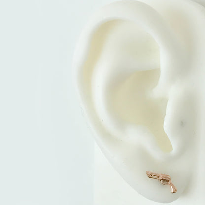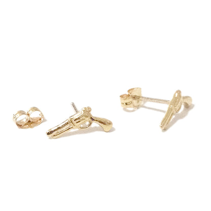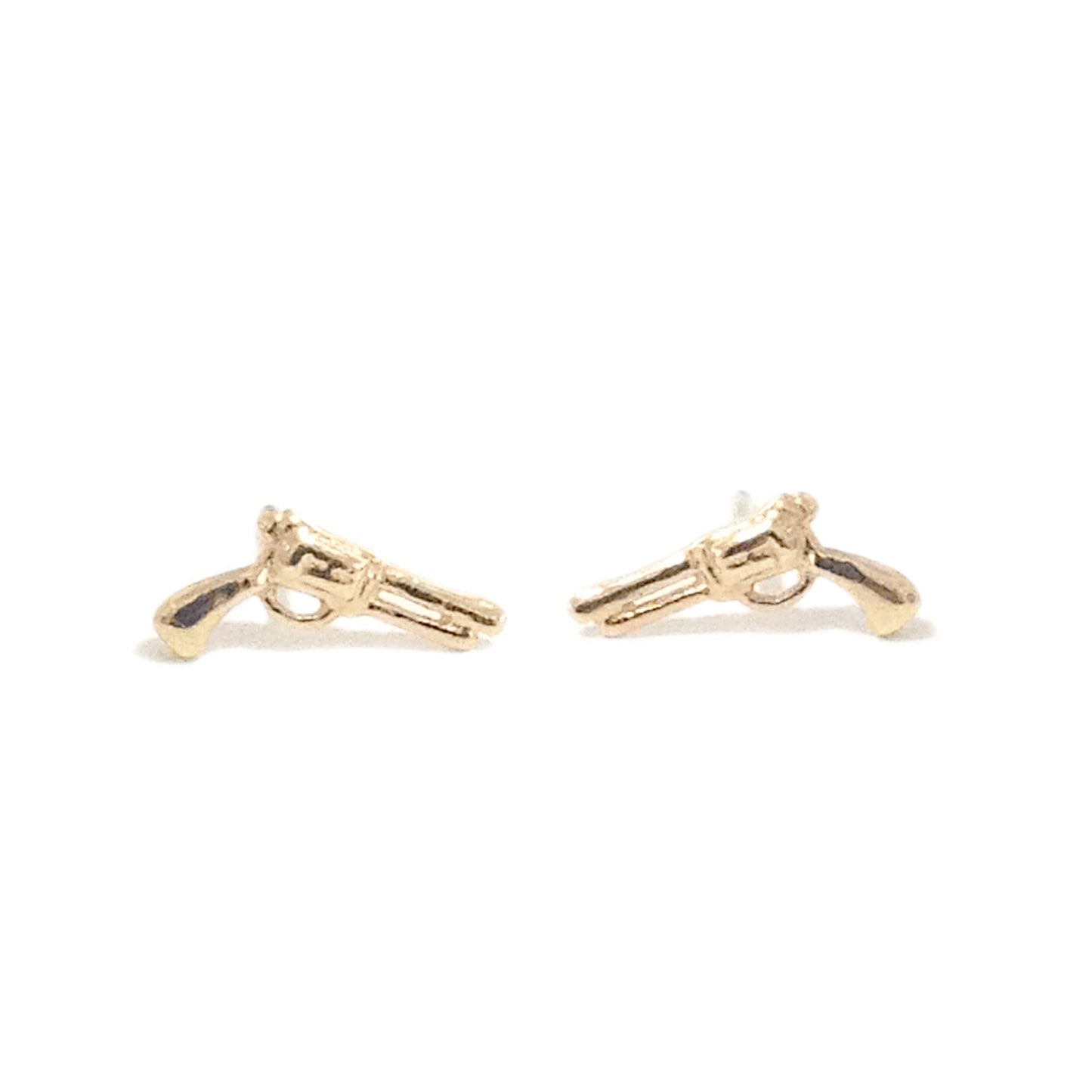 This finely handcrafted solid gold gun earring is made completely of 14K solid gold and comes with matching 14K solid gold secure earring backs.