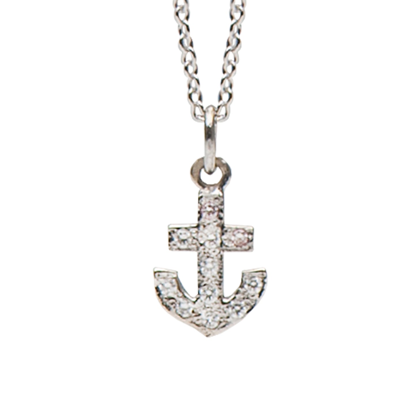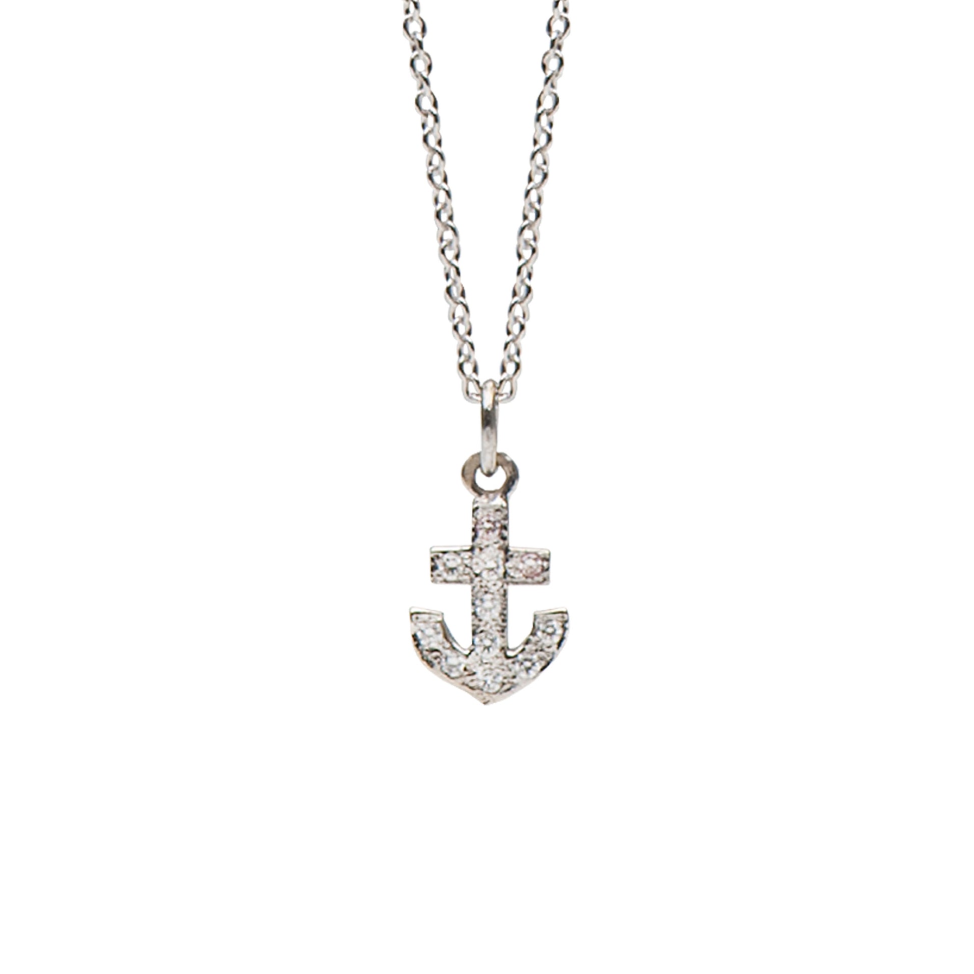 14K Gold Pavé Diamond Anchor Necklace, XS Size