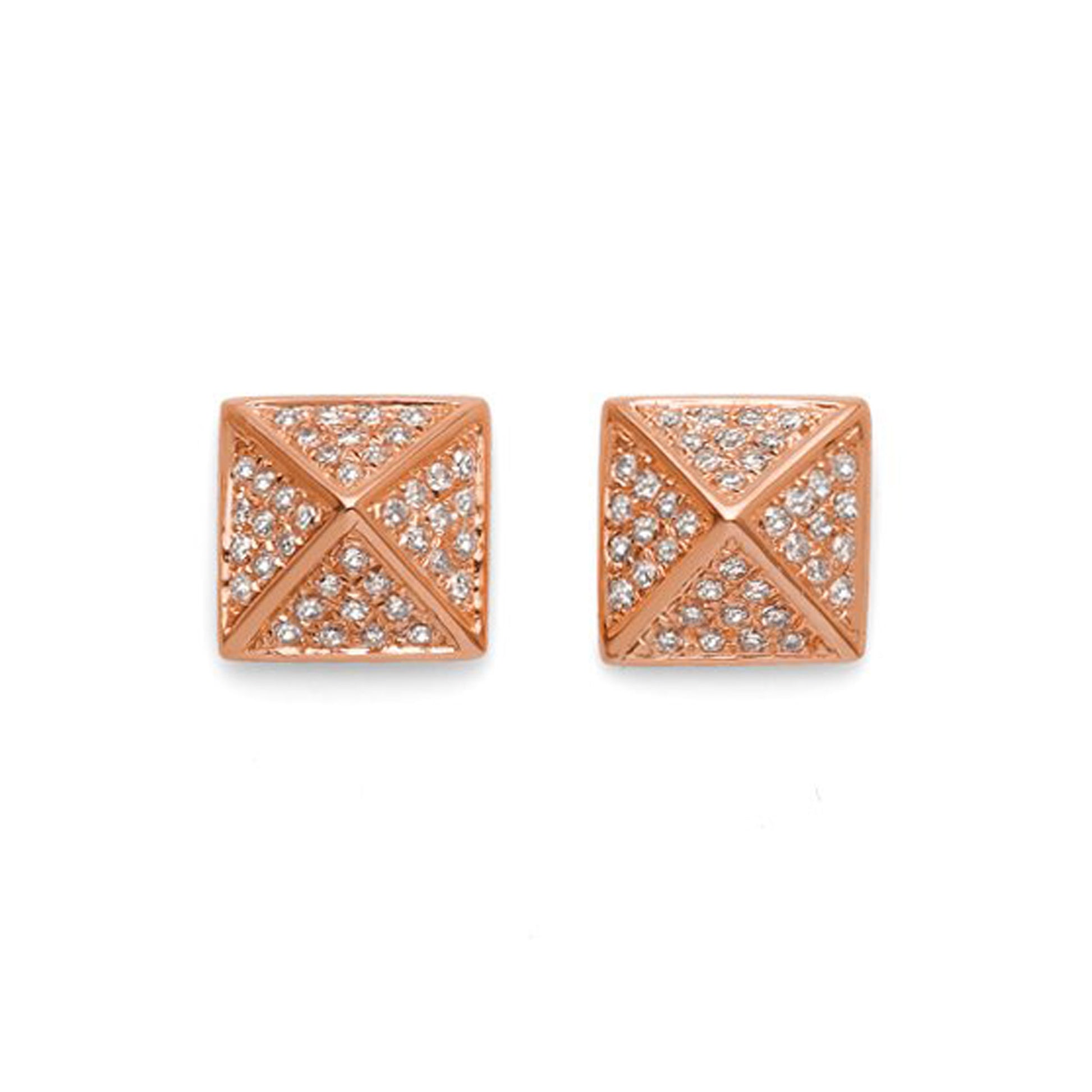 Spike Collection: 14K Gold Pavé Diamond Pyramid Spike Stud Earrings, Large Size