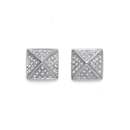 This pavé diamond pyramid spike stud earring is made with GVs1 quality round brilliant cut natural real Diamonds and composed of 14K solid gold which come with secure 14K solid gold earring backs.