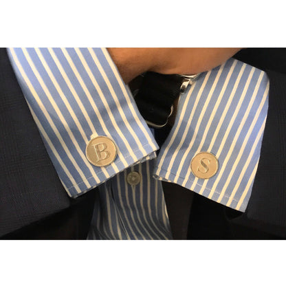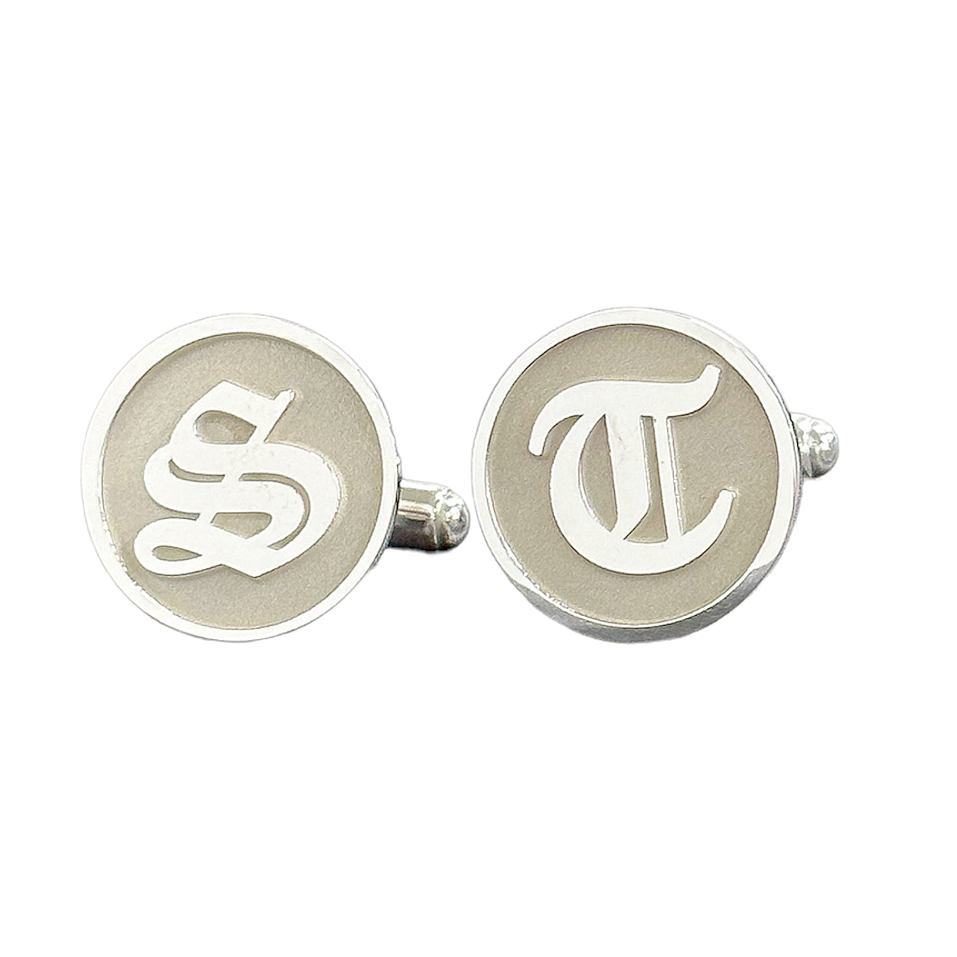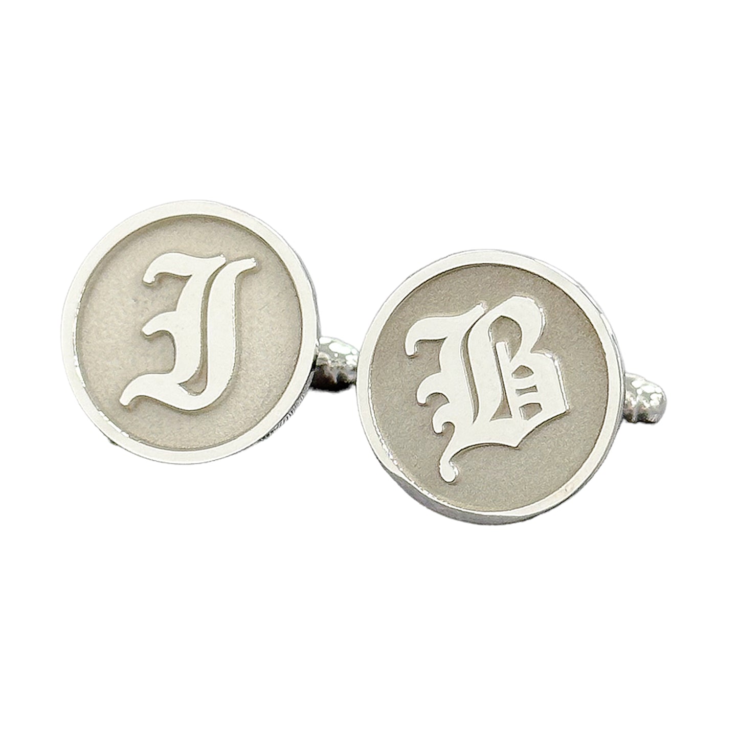 Sterling Silver Initial Letter Cameo Engraved Coin Cufflinks, Old English Font