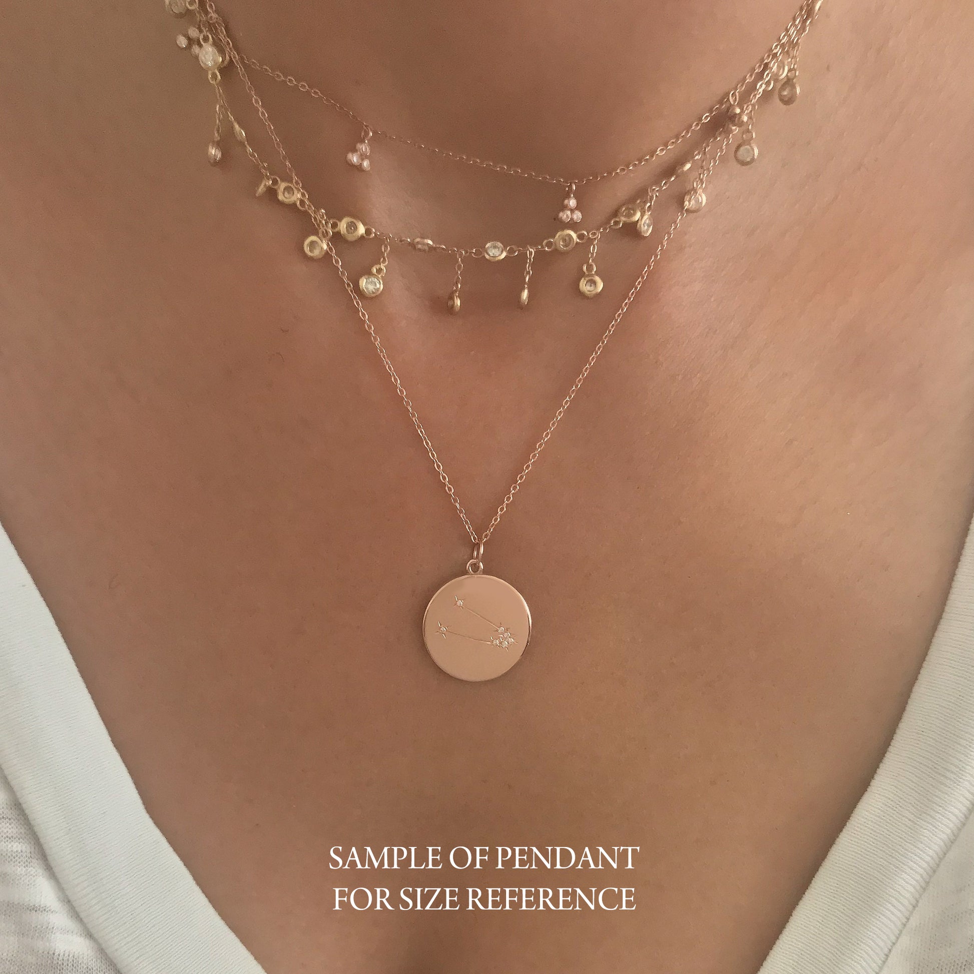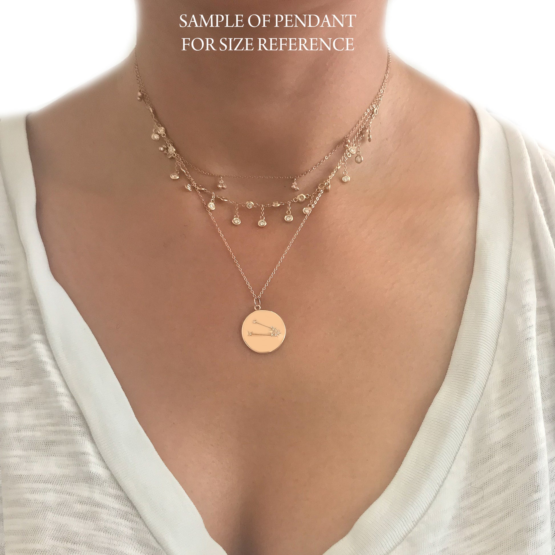 The Zodiac Constellation Collection is the perfect personalized touch to any gift recipient! This unique pendant is composed of 14K solid gold set with GVS1 quality round brilliant cut diamonds exemplifying the stars that make up the zodiac's constellation and has the specific astrological horoscope name engraved on the backside. This piece is beautifully complemented by a durable 14K solid gold chain and is adjustable in length, or available to be purchased as a charm alone without the chain.